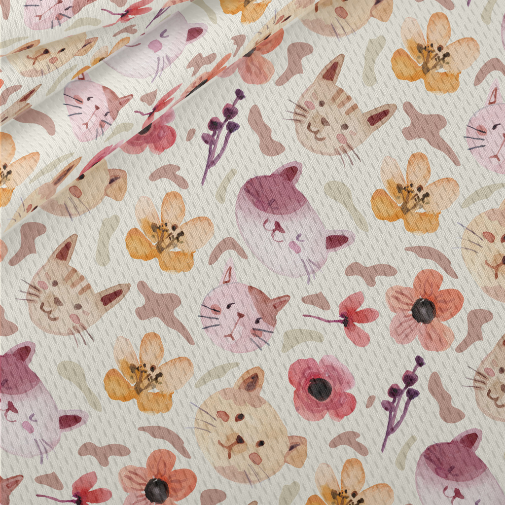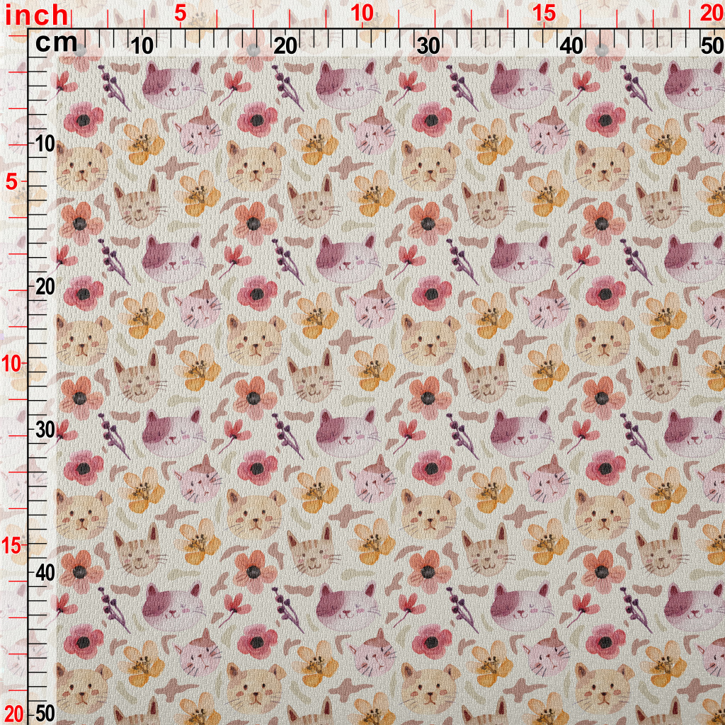 水彩貓咪與小花鳥眼布(幅寬160公分)