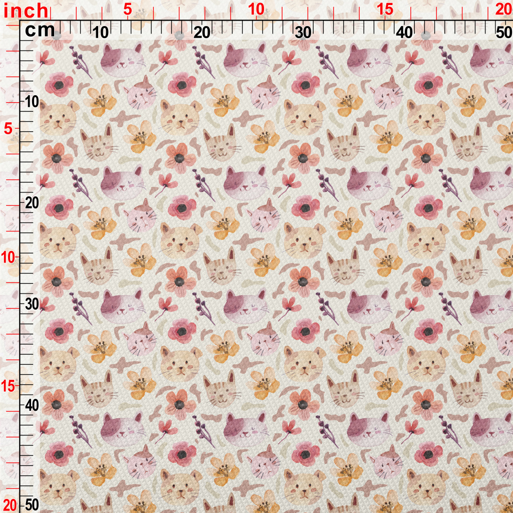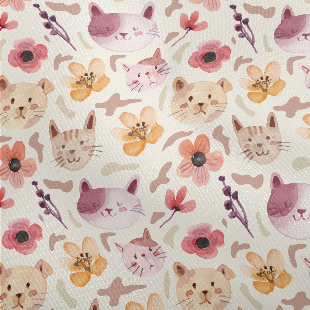 水彩貓咪與小花雙斜布(幅寬150公分)
