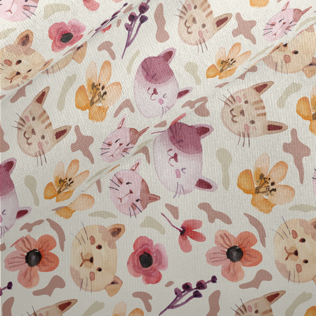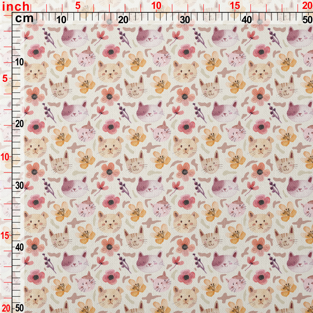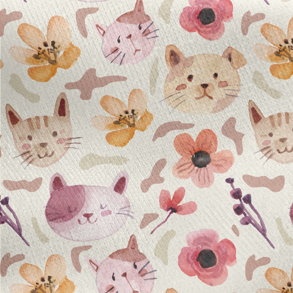 水彩貓咪與小花刷毛布(幅寬150公分)