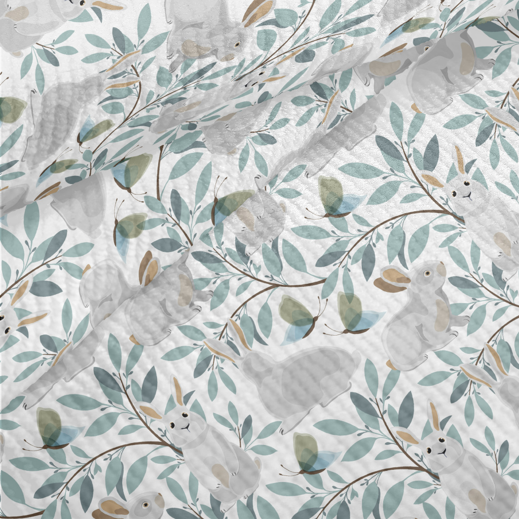 森林兔子與蝴蝶毛巾布(幅寬160公分)