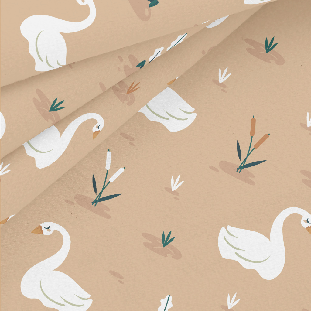 優雅卡通天鵝水晶絨(幅寬160公分)