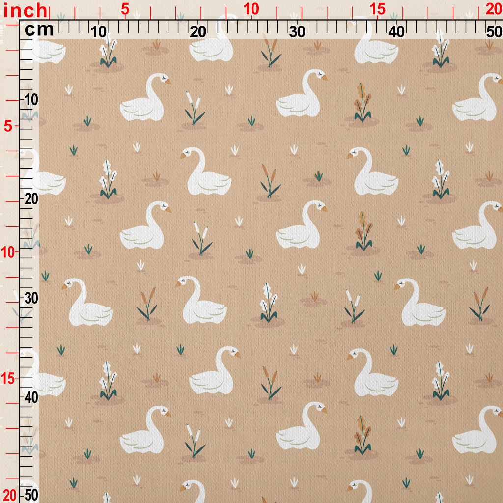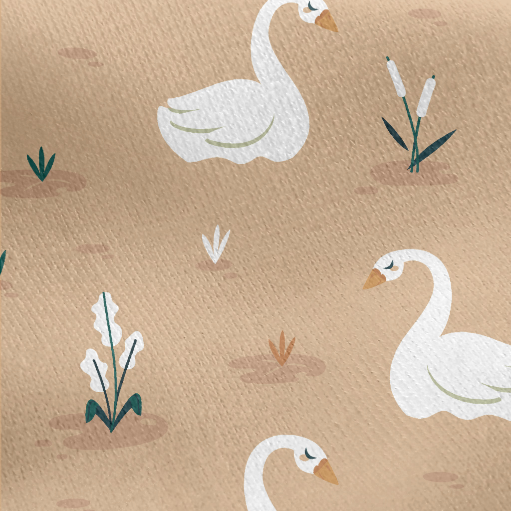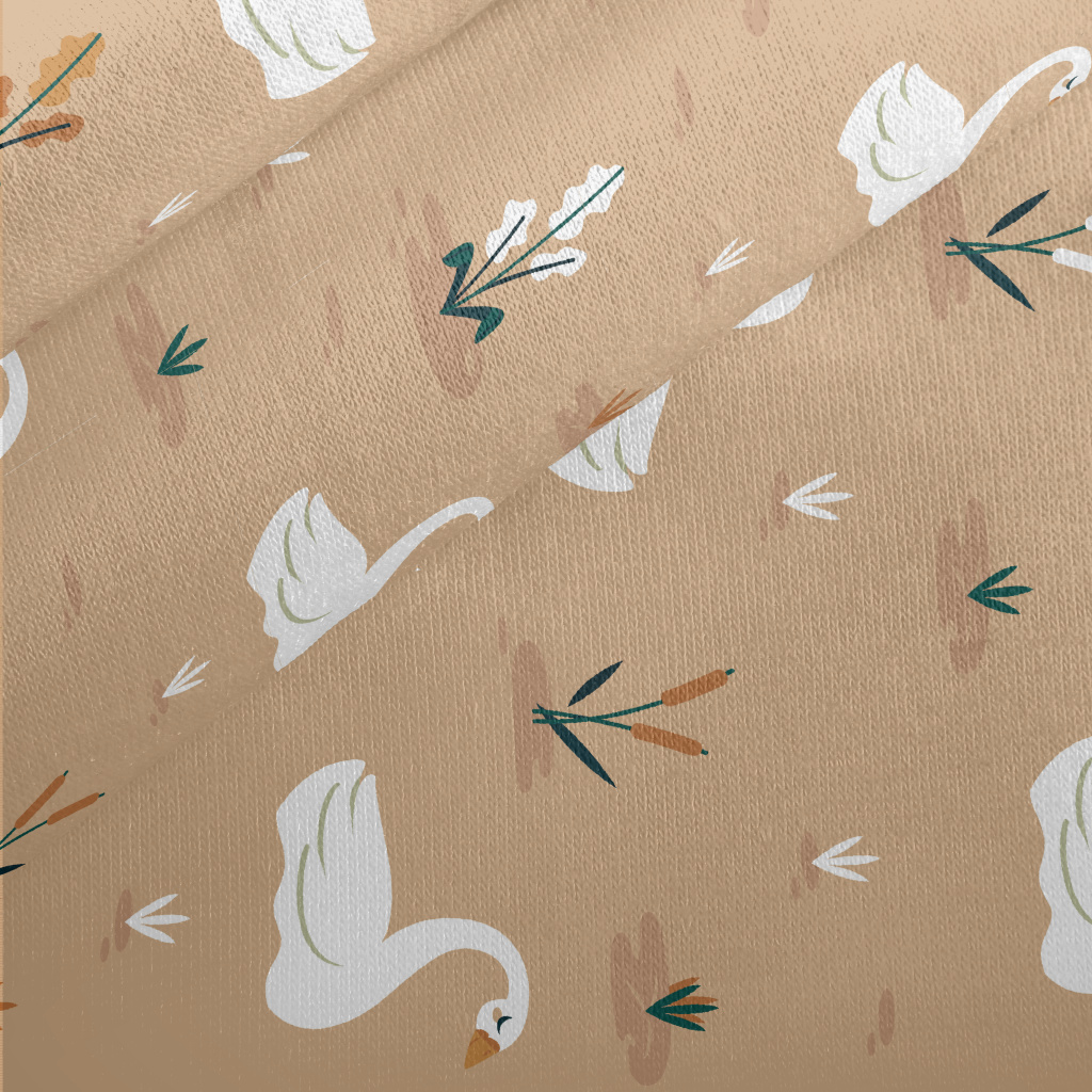 優雅卡通天鵝刷毛布(幅寬150公分)