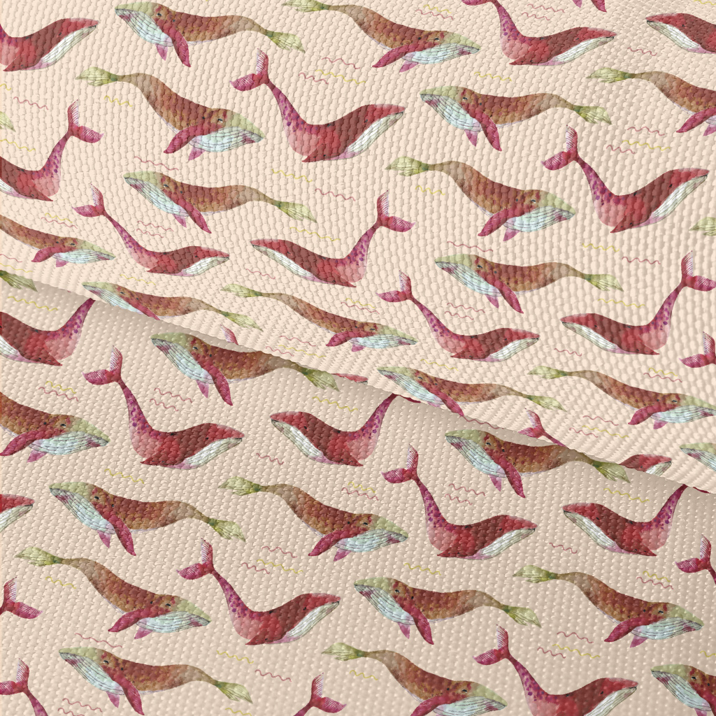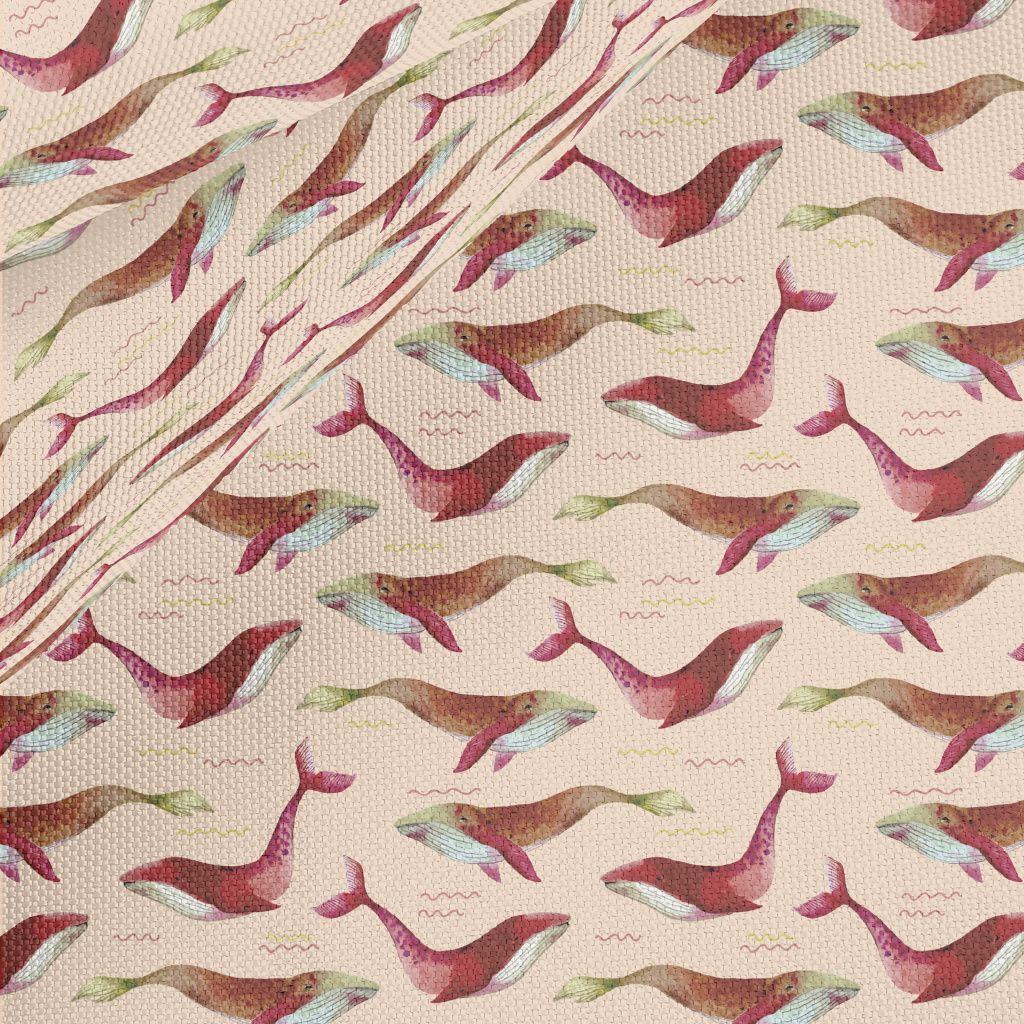 紅色水彩鯨魚牛津布(幅寬150公分)