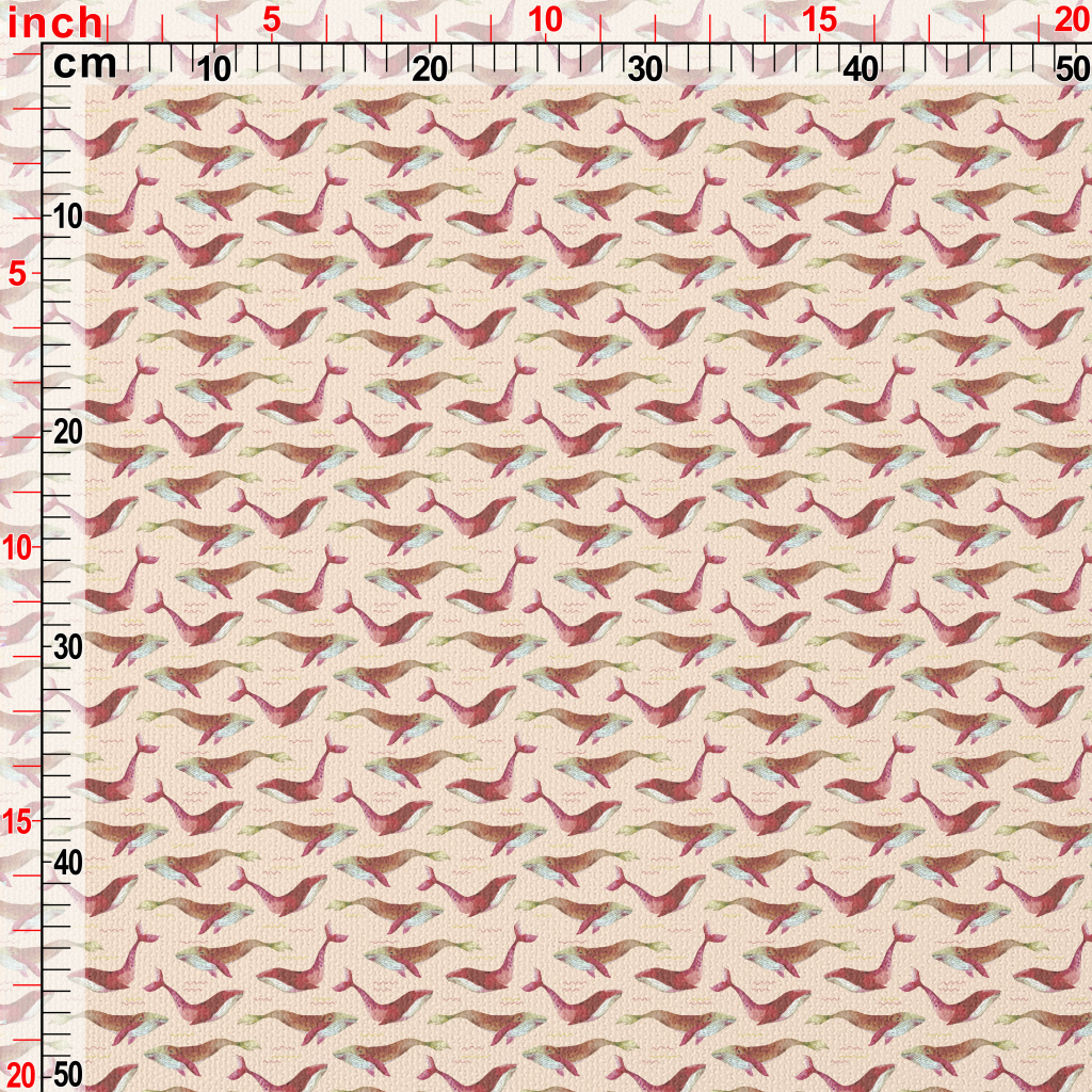 紅色水彩鯨魚帆布(幅寬150公分)