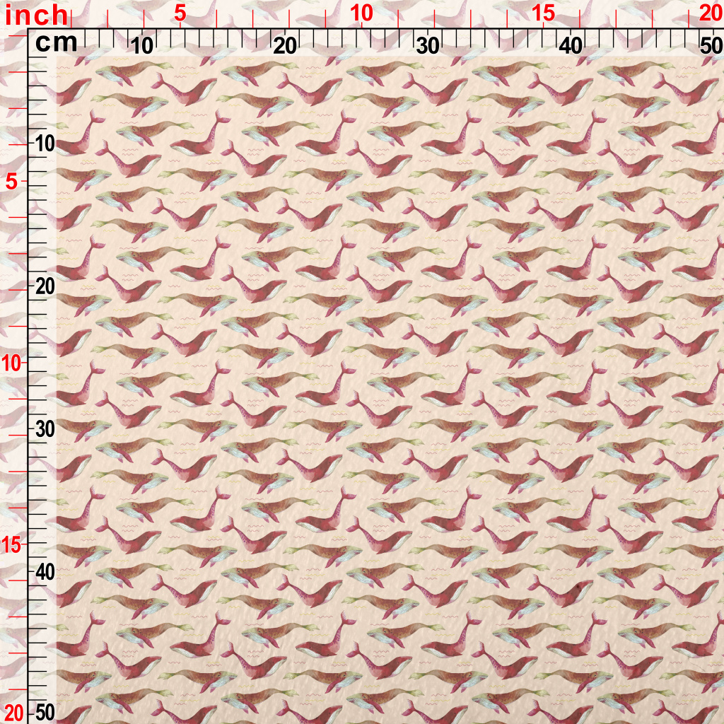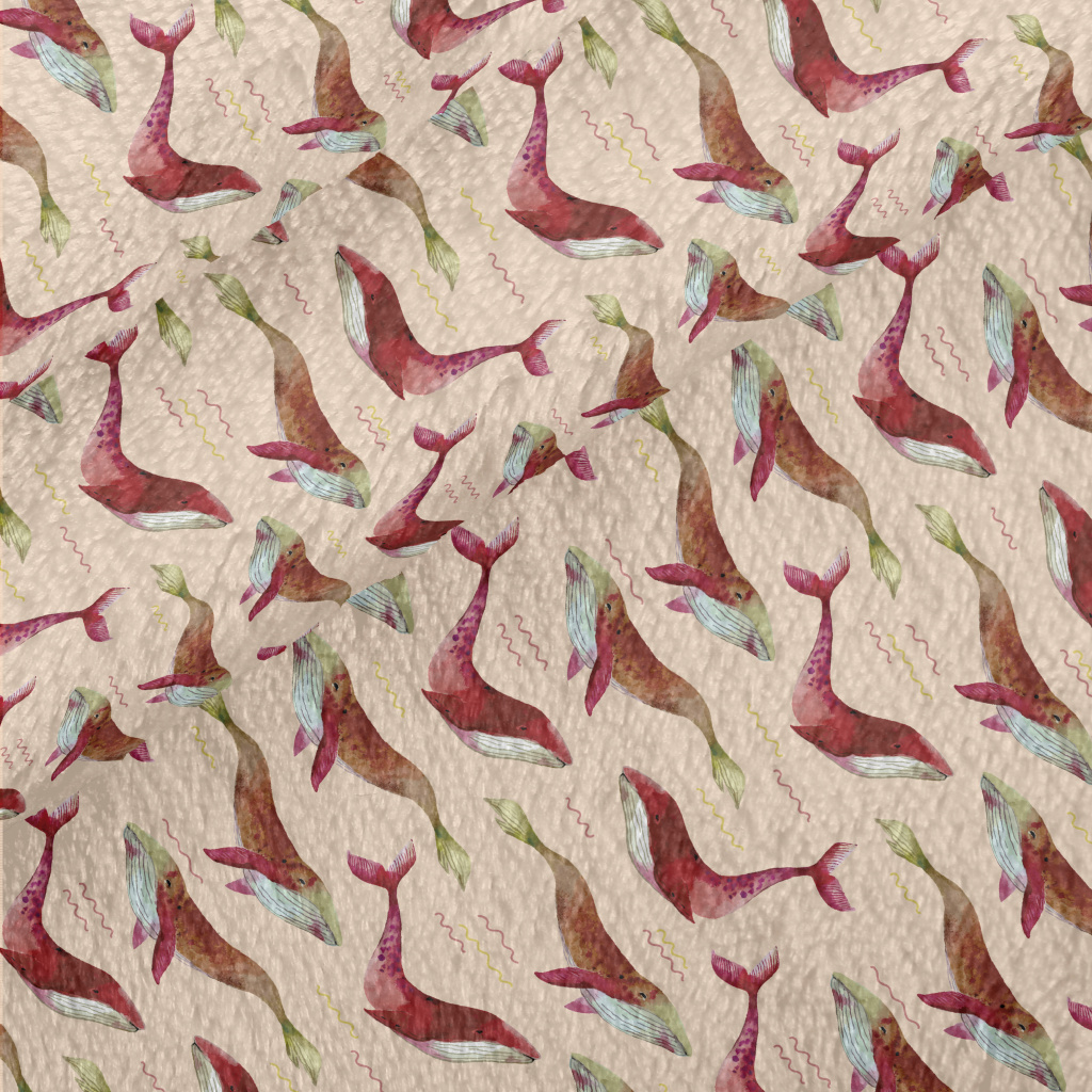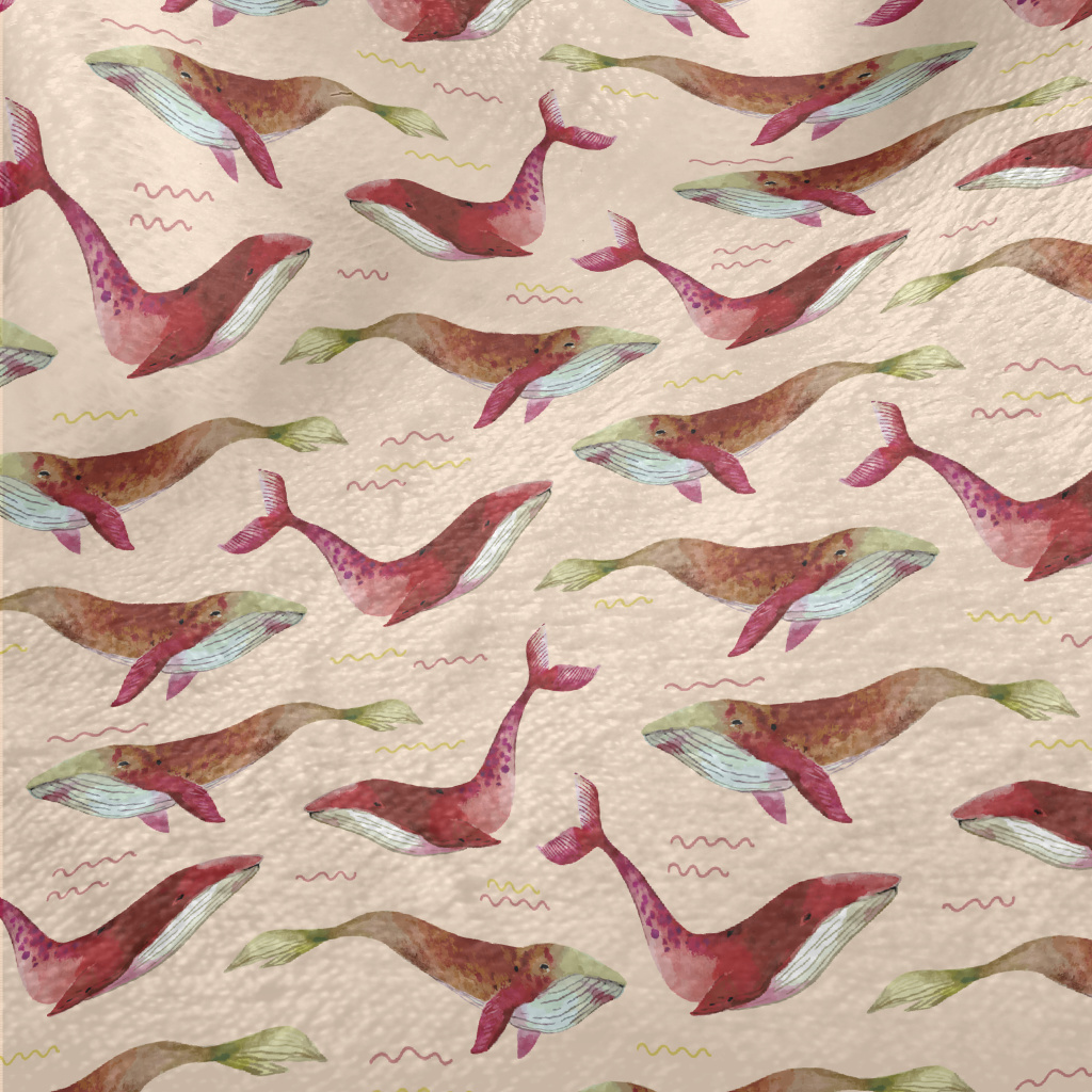 紅色水彩鯨魚法蘭絨(幅寬150公分)