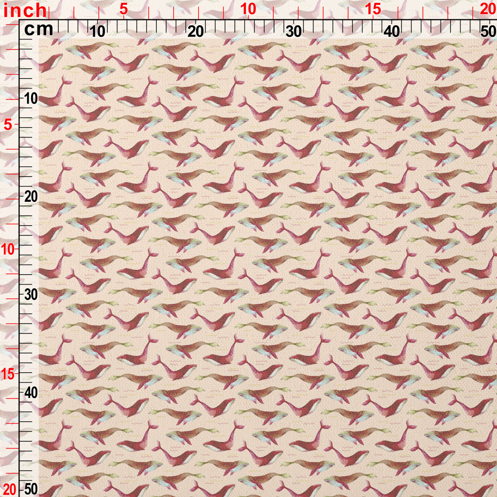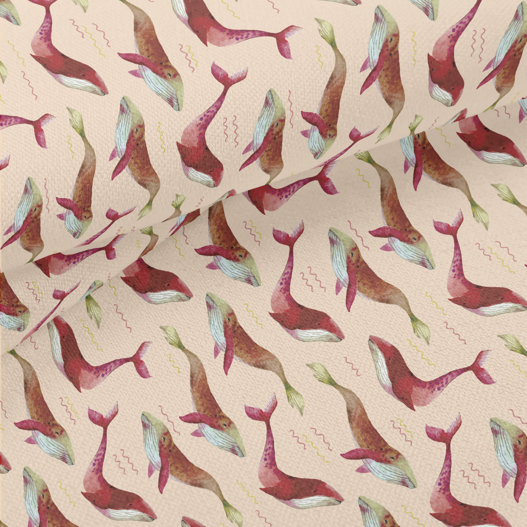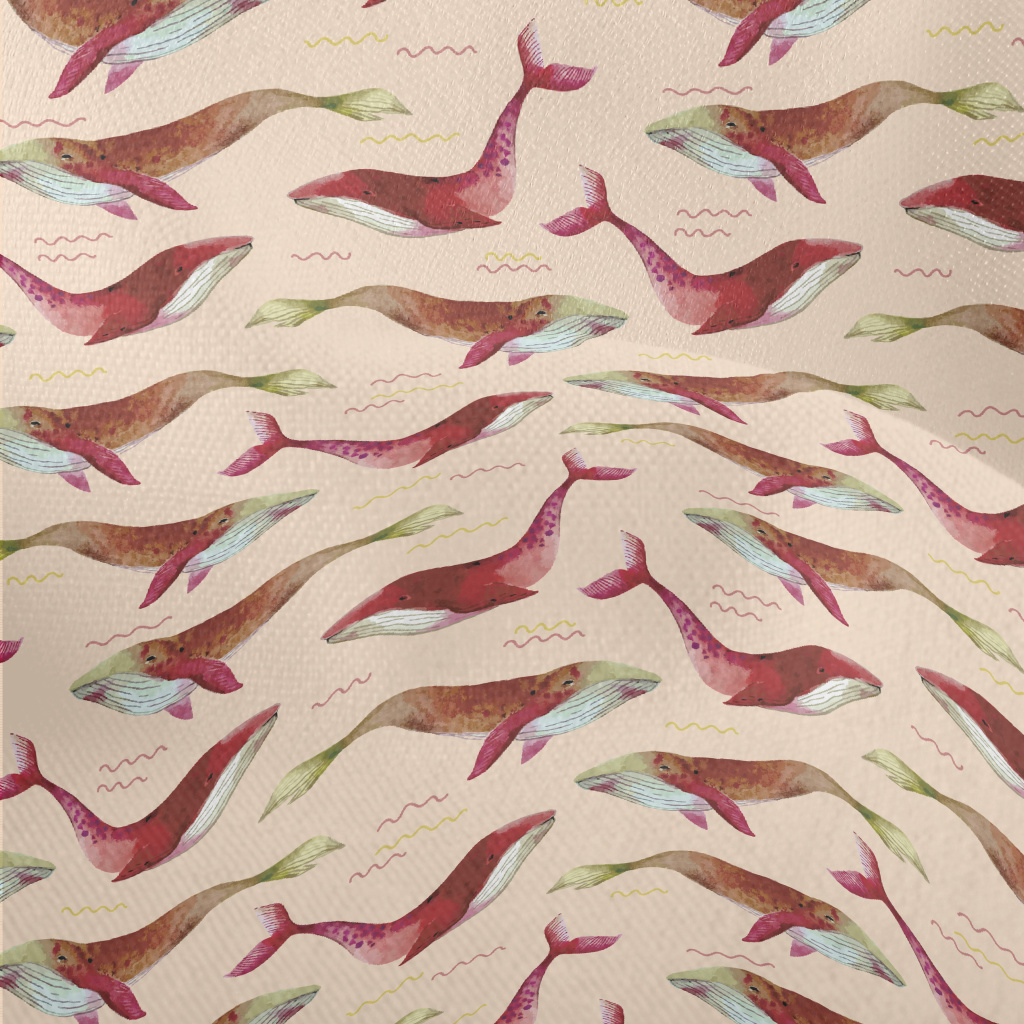 紅色水彩鯨魚竹節麻(幅寬150公分)