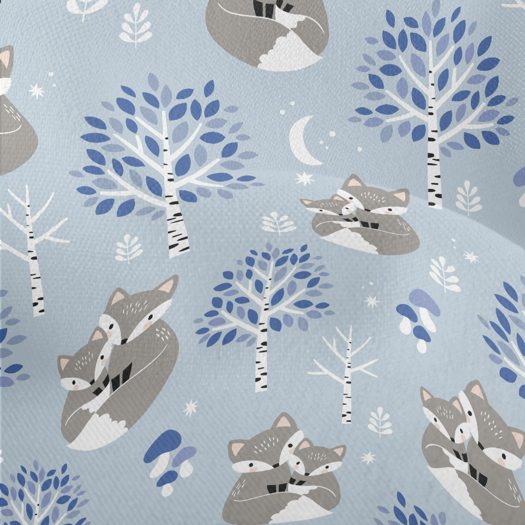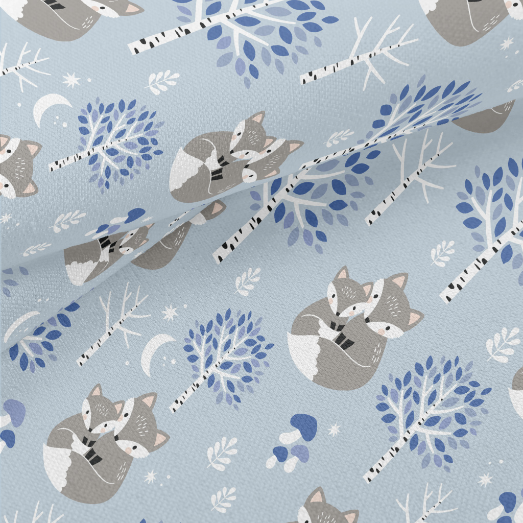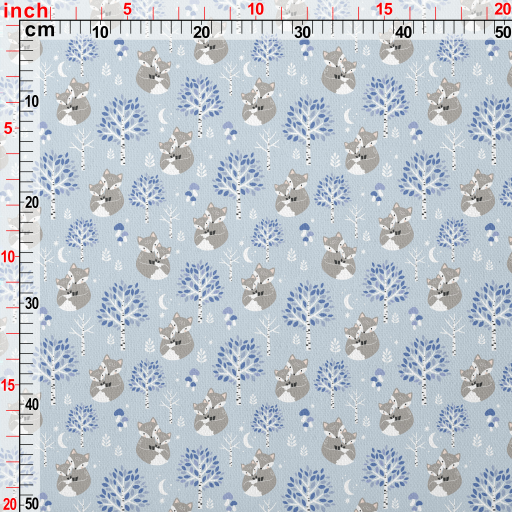 手繪狐狸家庭竹節麻(幅寬150公分)