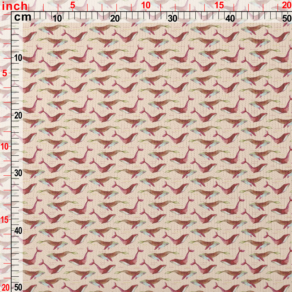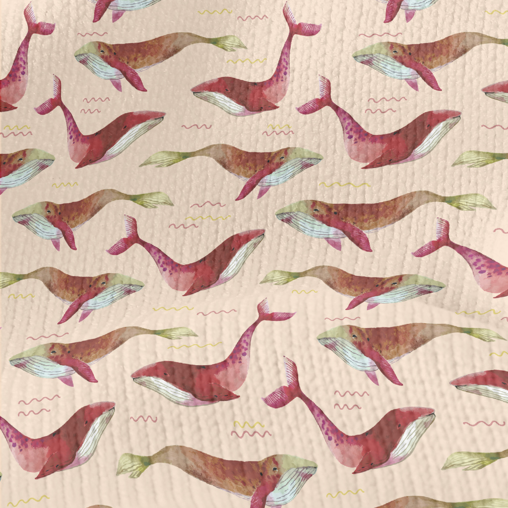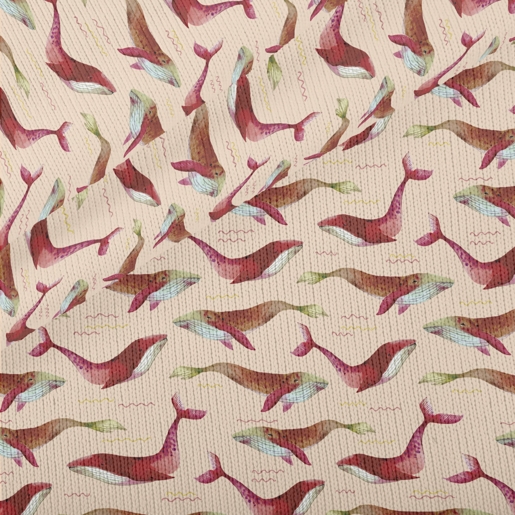 紅色水彩鯨魚仿毛衣布(幅寬150公分)