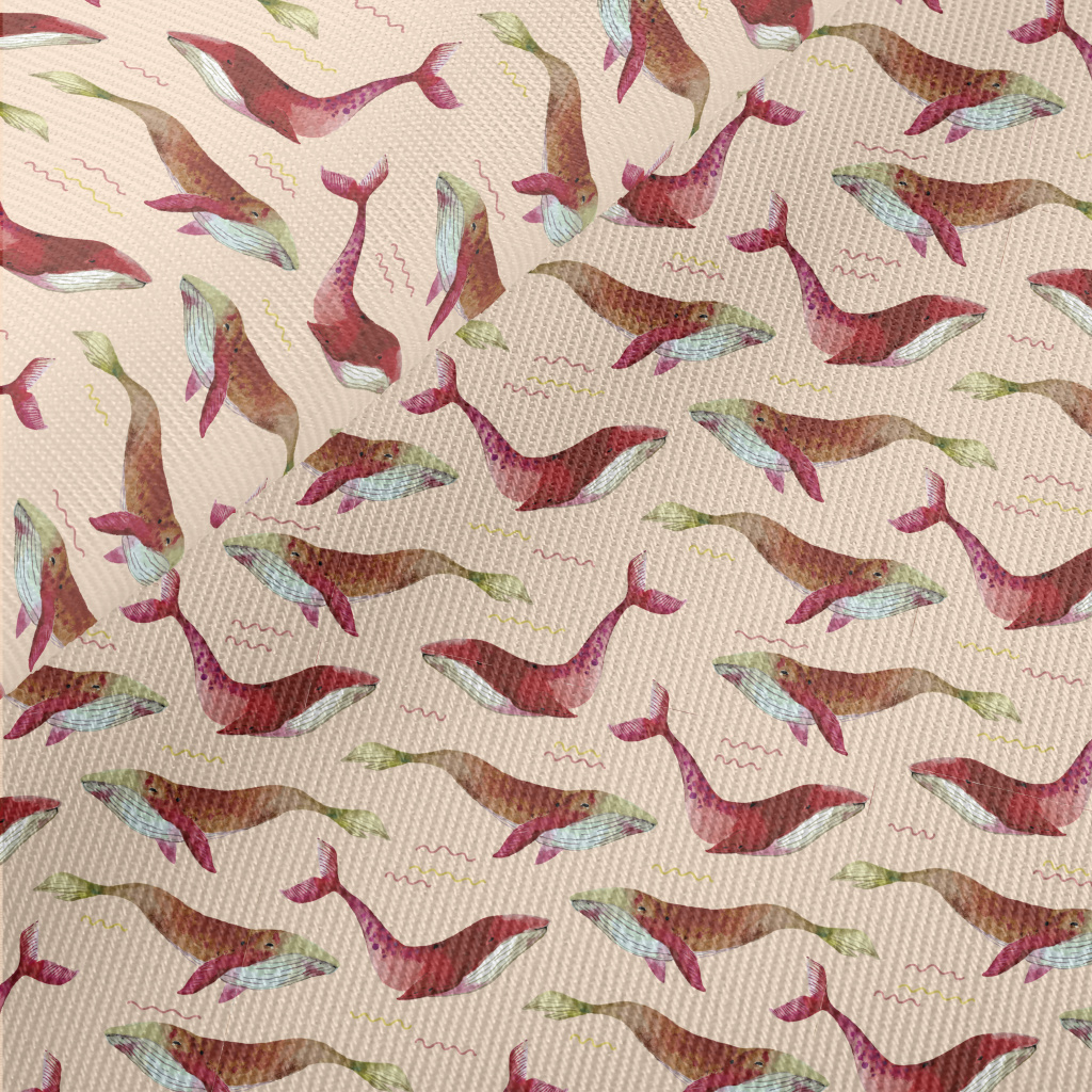 紅色水彩鯨魚厚棉布(幅寬150公分)