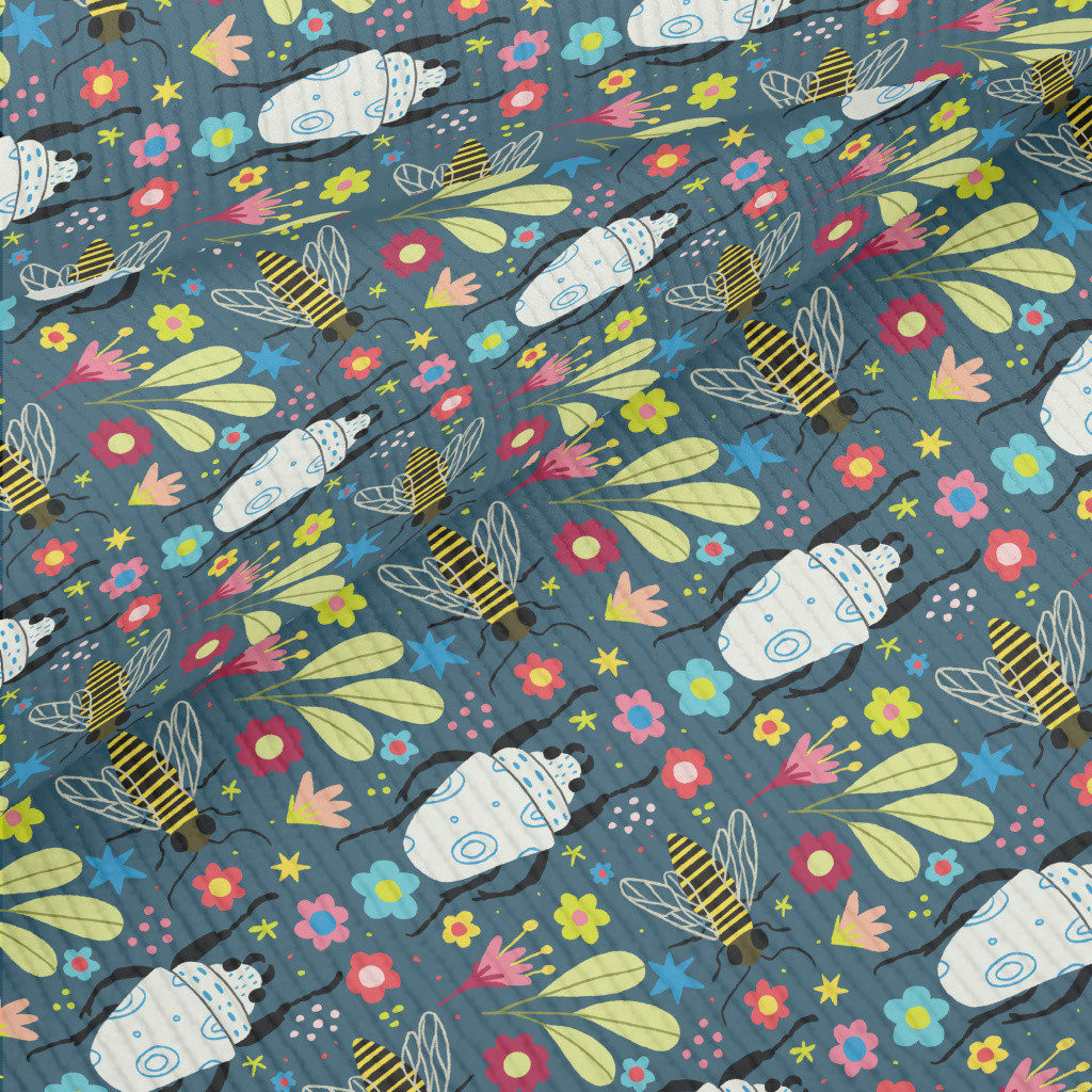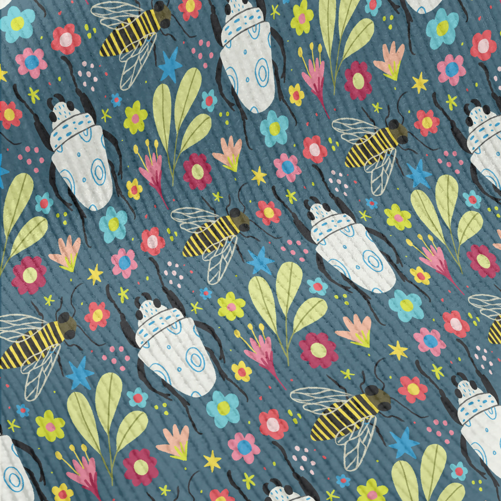 彩色鮮花與昆蟲燈芯絨(幅寬150公分)