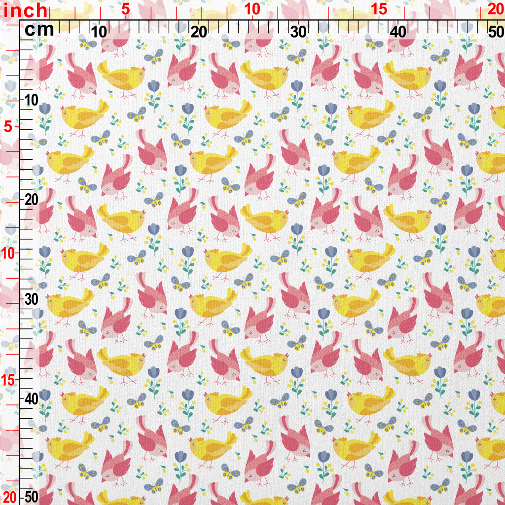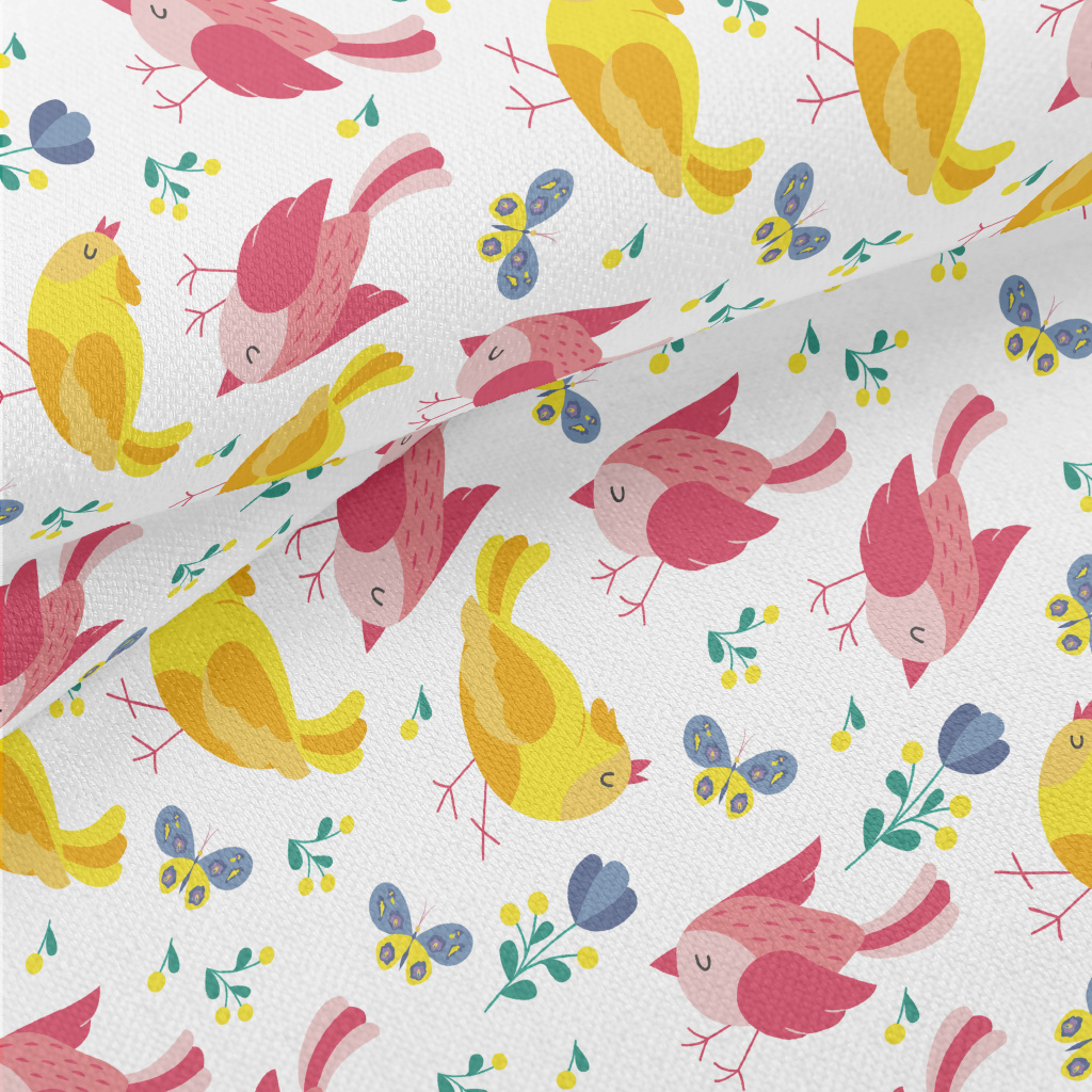 鮮豔卡通小鳥竹節麻(幅寬150公分)