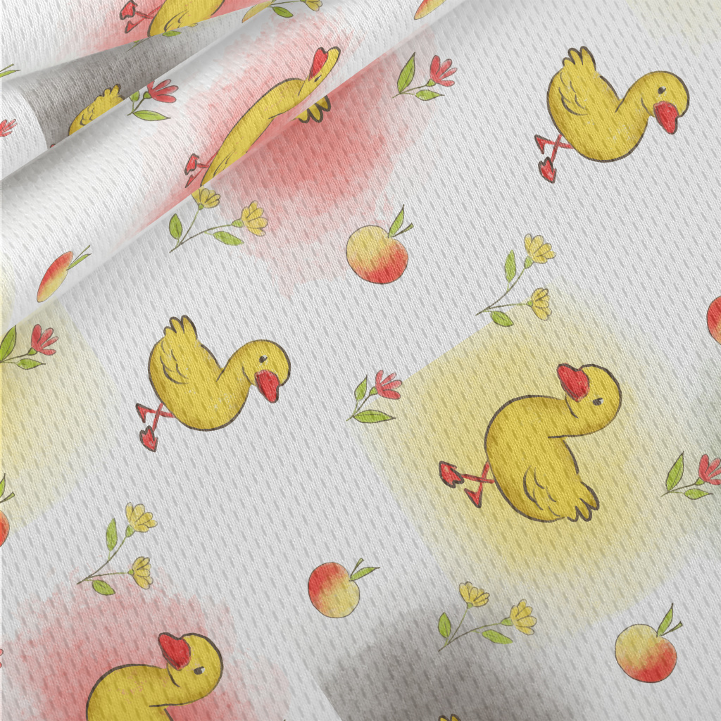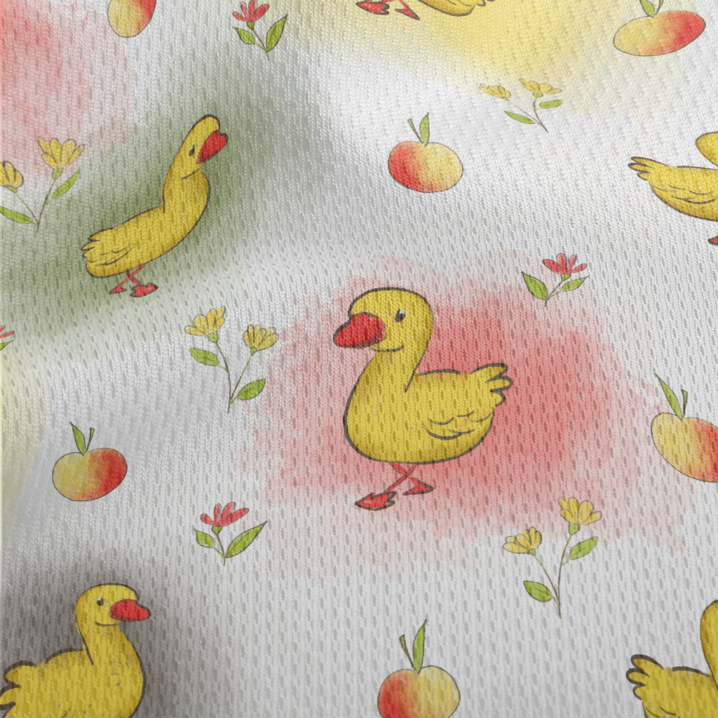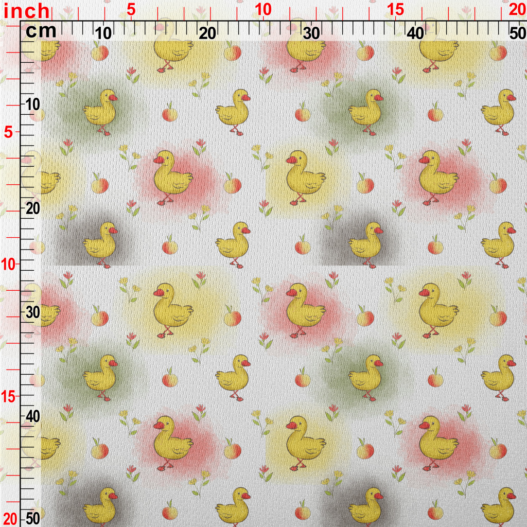 手繪小鴨和蘋果花鳥眼布(幅寬160公分)