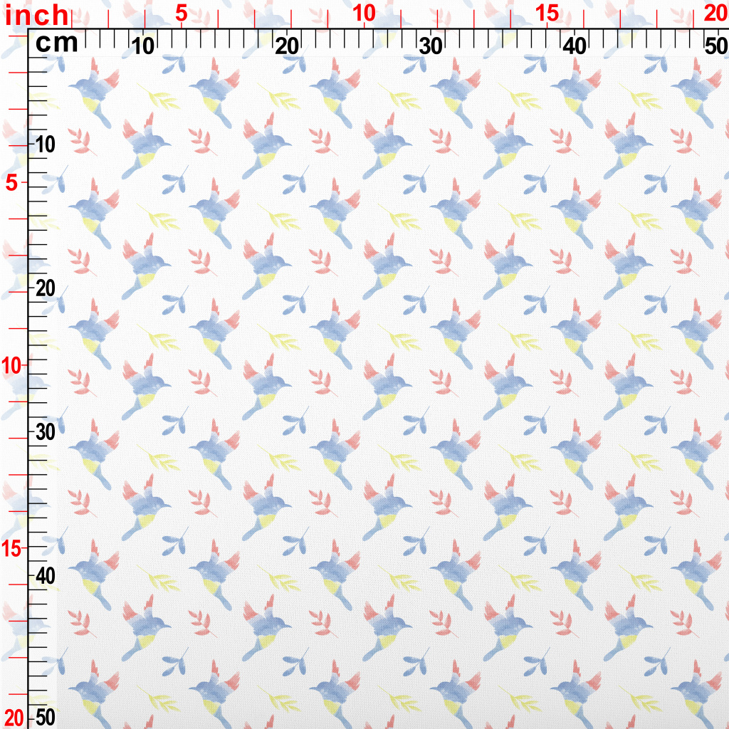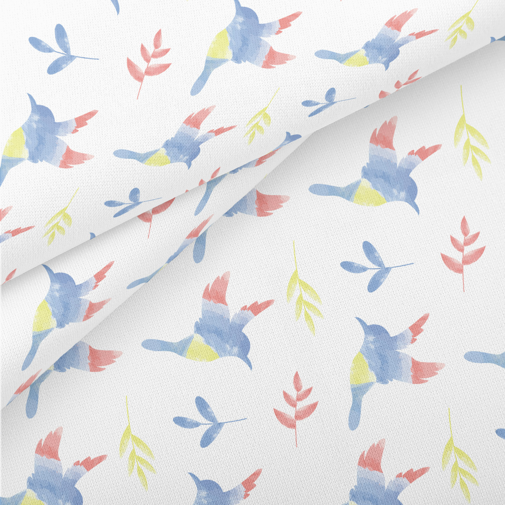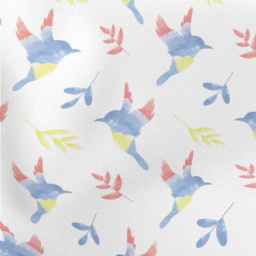 水彩風的花卉和鳥羅馬布(幅寬160公分)