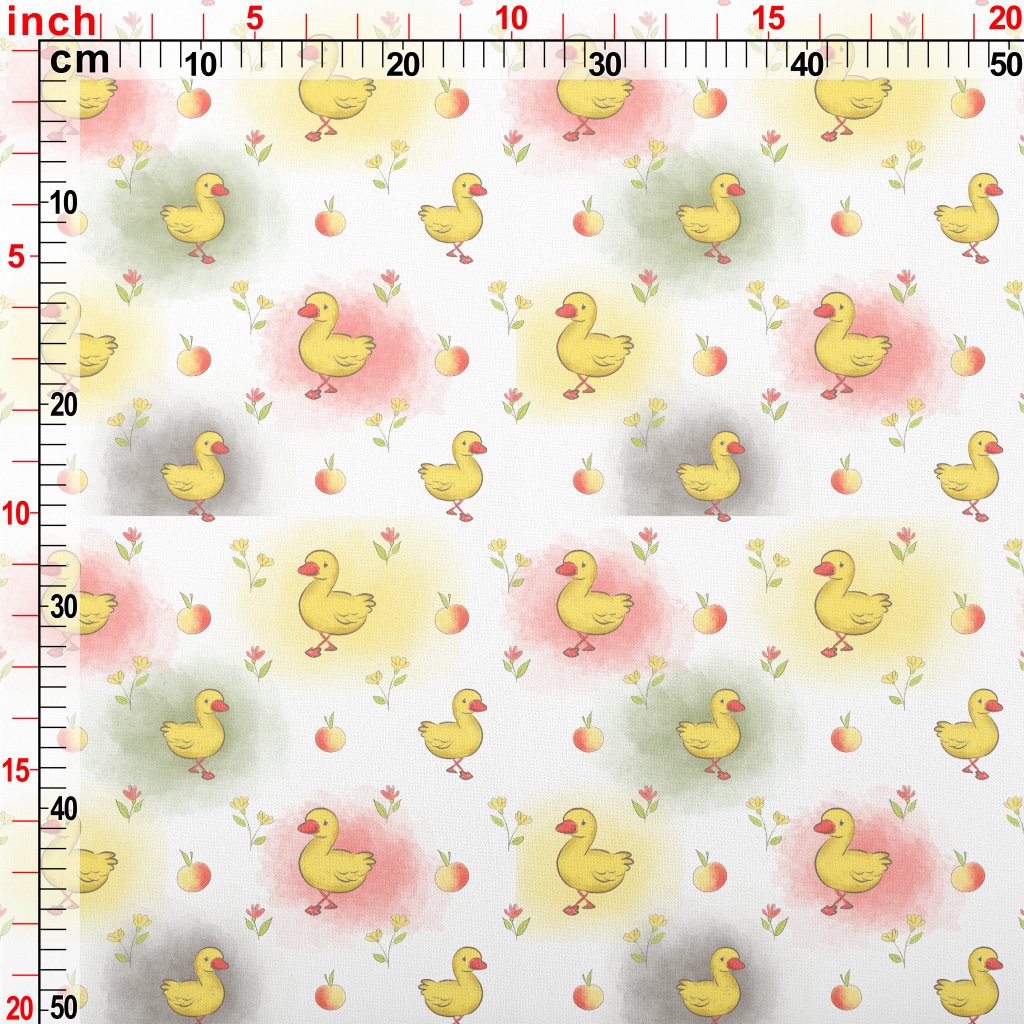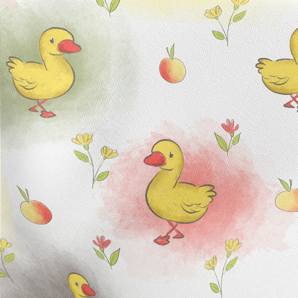 手繪小鴨和蘋果花羅馬布(幅寬160公分)
