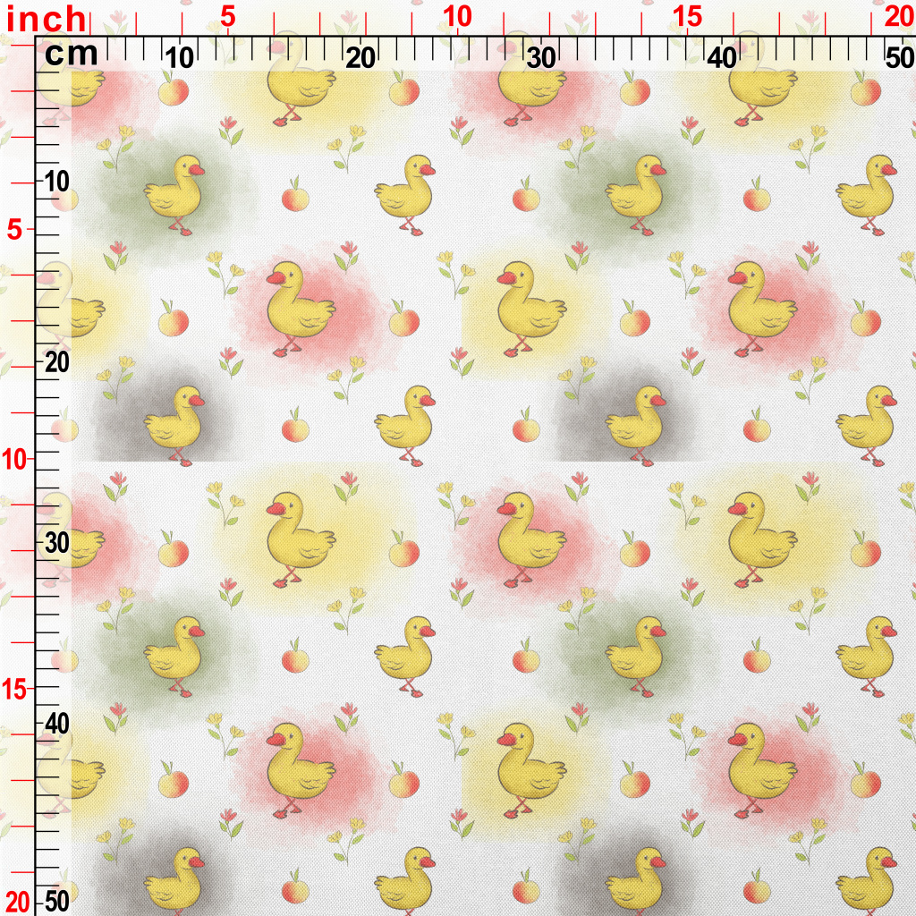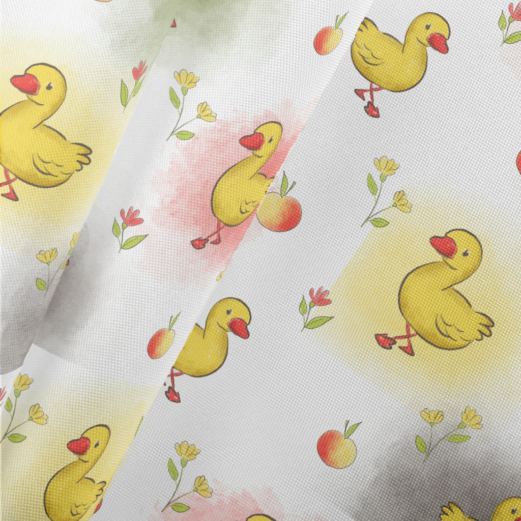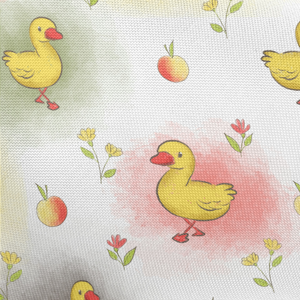 手繪小鴨和蘋果花春亞紡(幅寬160公分)