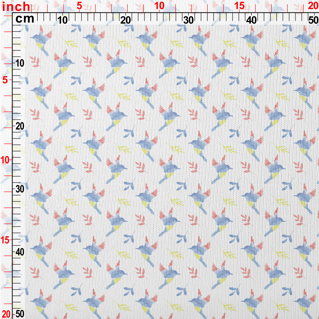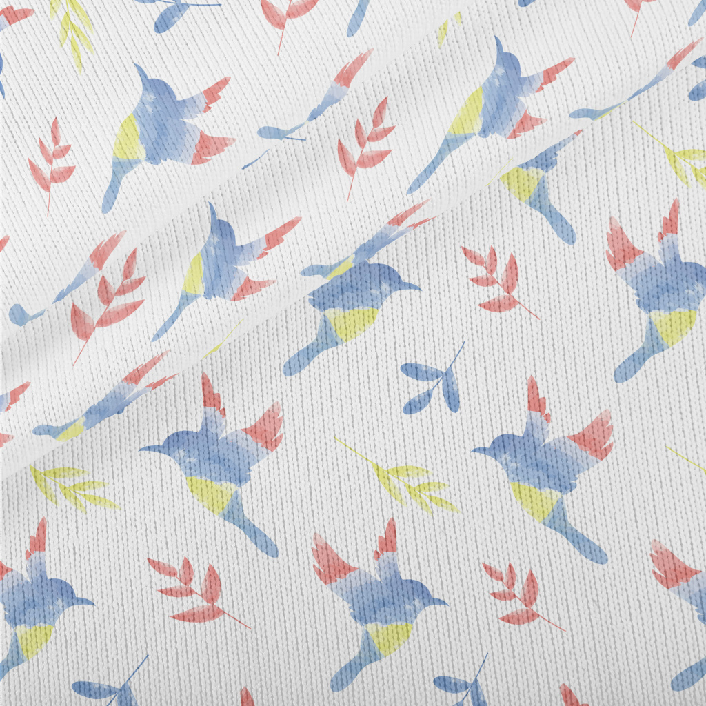 水彩風的花卉和鳥仿毛衣布(幅寬150公分)