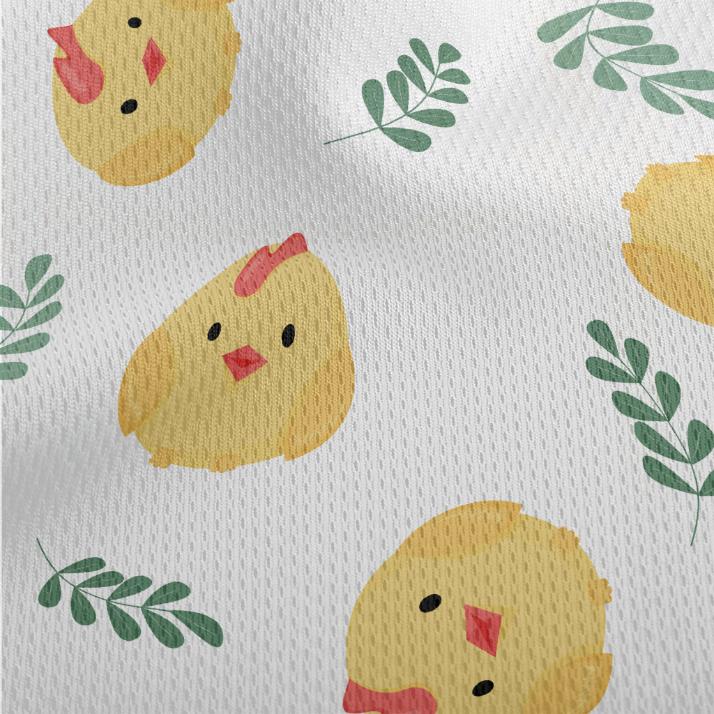 可愛小雞和葉子鳥眼布(幅寬160公分)