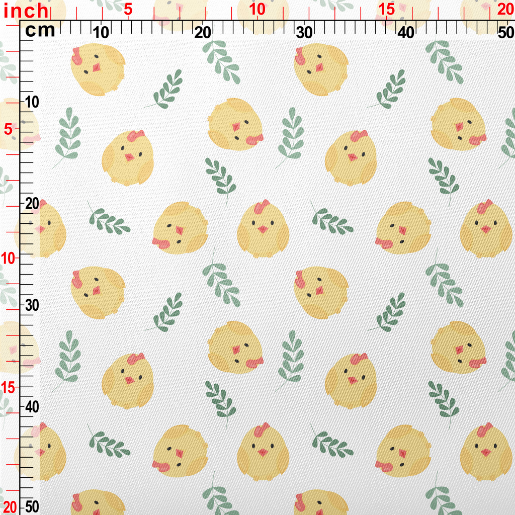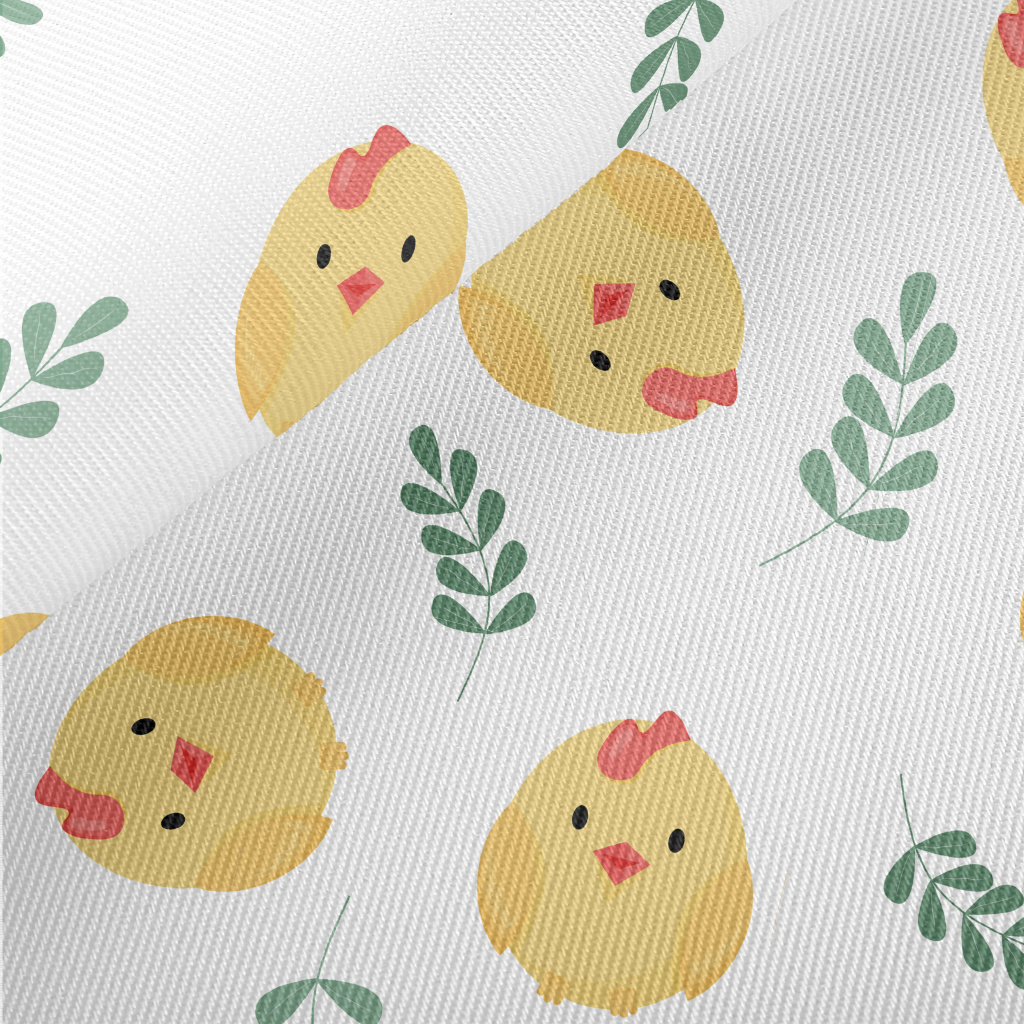可愛小雞和葉子斜紋布(幅寬150公分)
