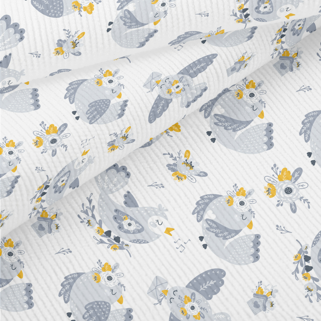 帶著花飛行的鳥兒燈芯絨(幅寬150公分)