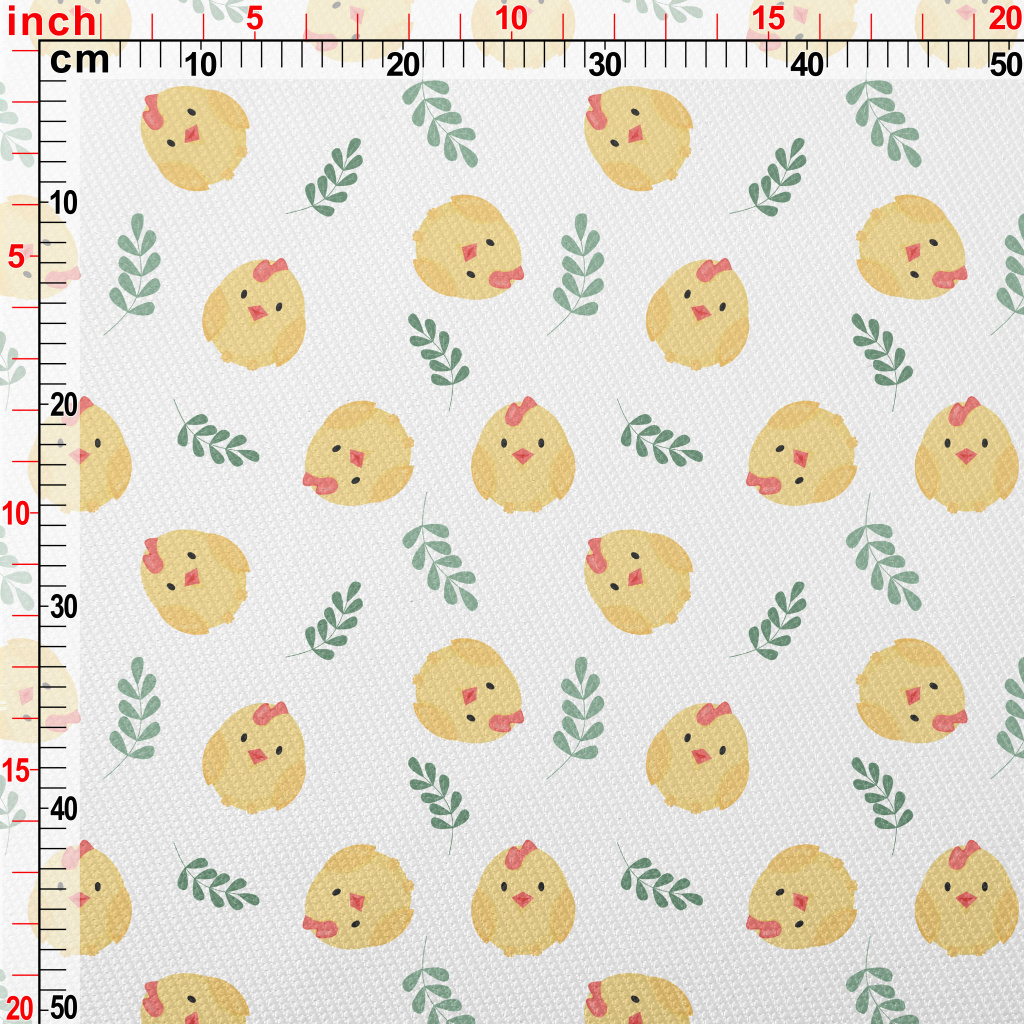 可愛小雞和葉子雙斜布(幅寬150公分)