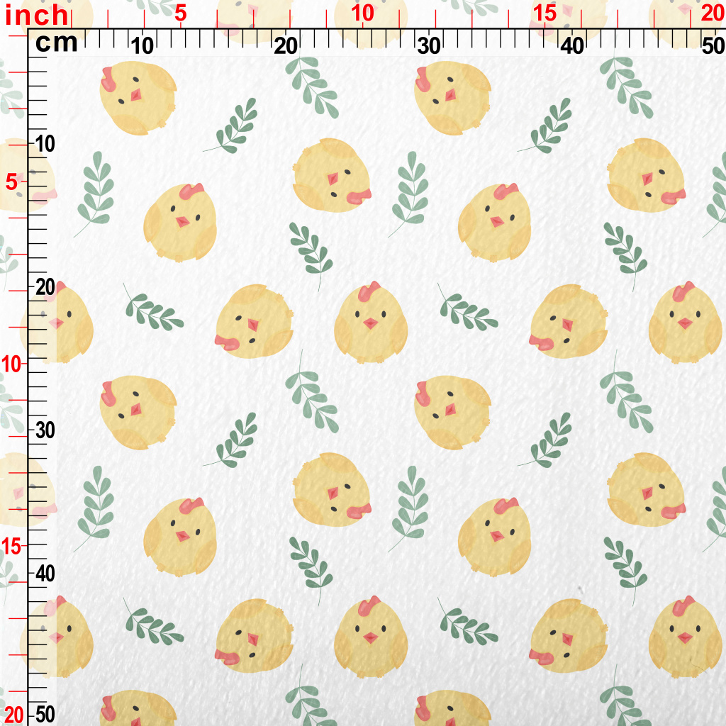 可愛小雞和葉子法蘭絨(幅寬150公分)