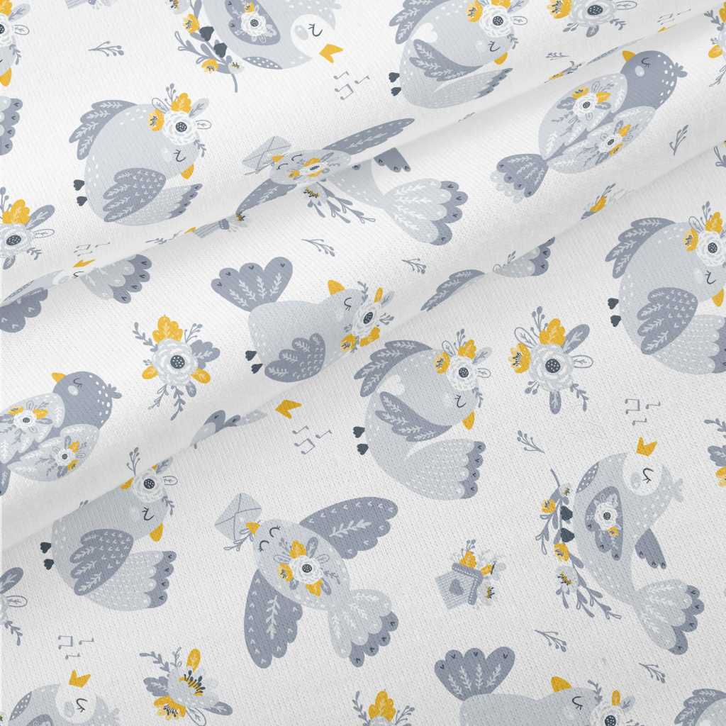帶著花飛行的鳥兒仿棉布(幅寬150公分)