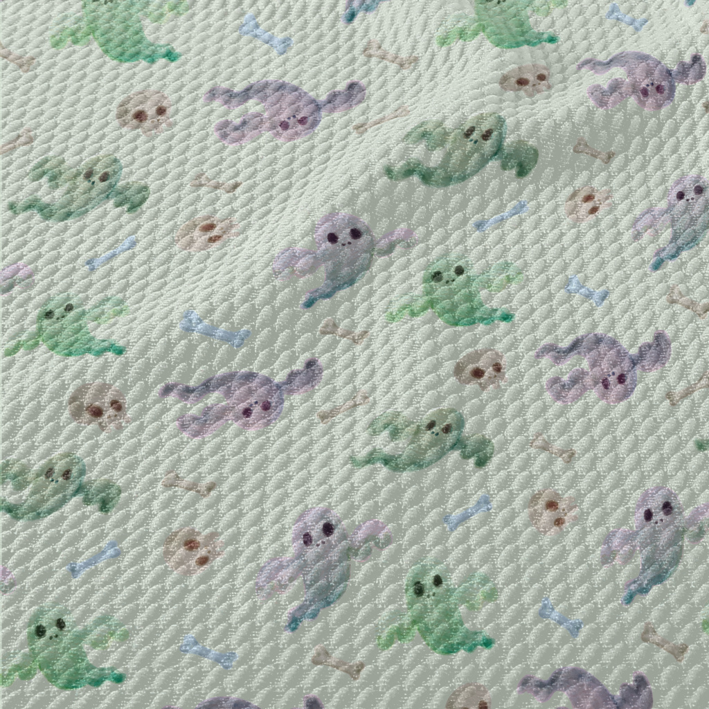 水彩風幽靈和骷髏泡泡布(幅寬160公分)