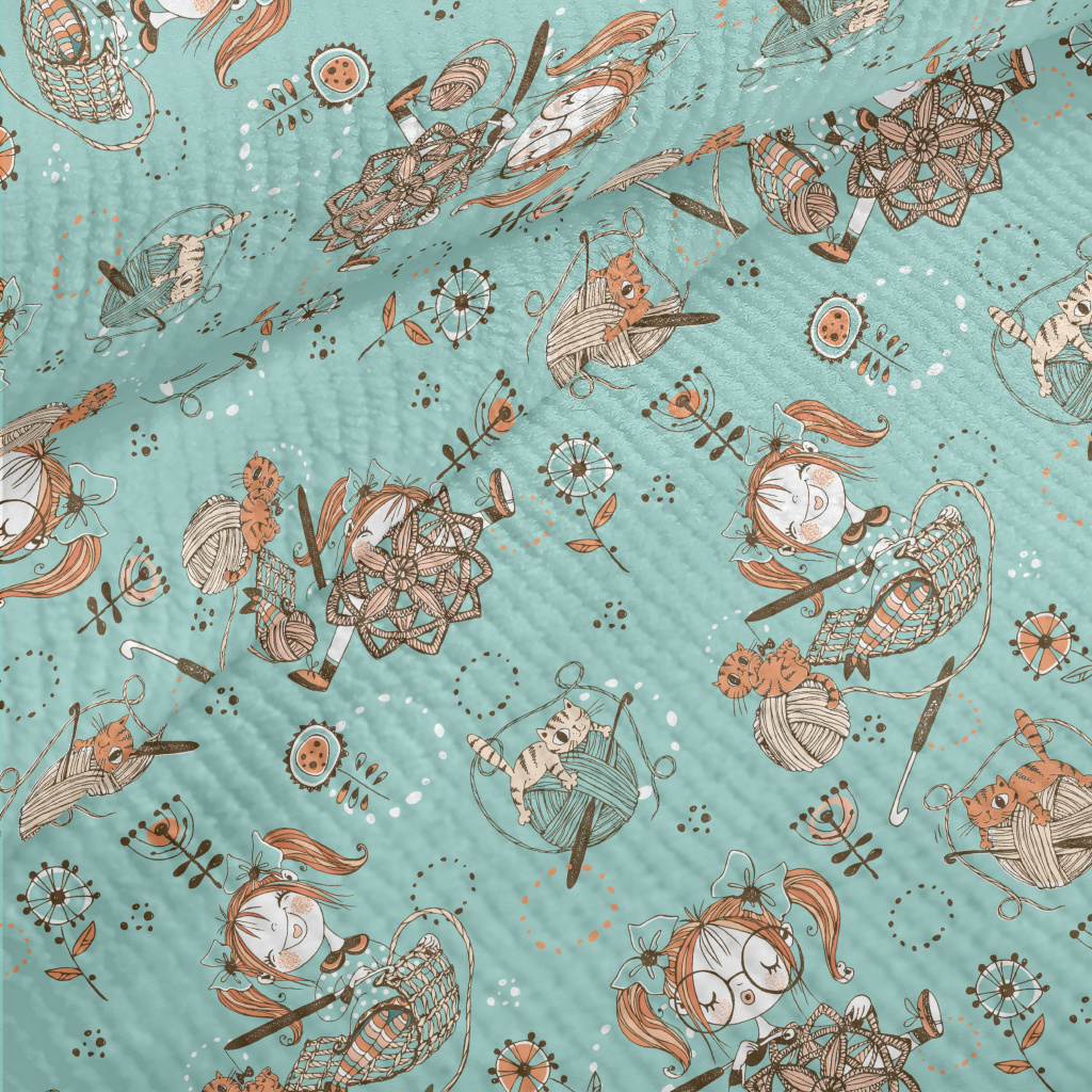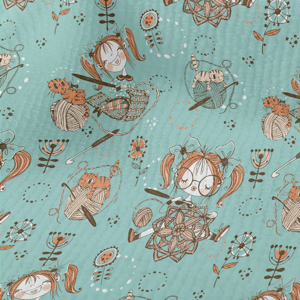 喜歡編織的眼鏡女孩毛巾布(幅寬160公分)