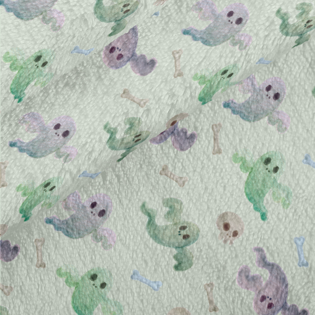 水彩風幽靈和骷髏法蘭絨(幅寬150公分)