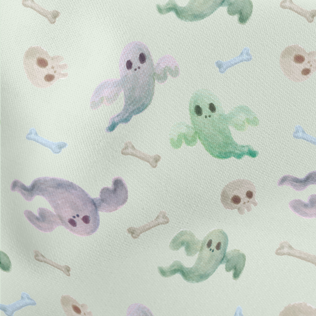 水彩風幽靈和骷髏薄棉布(幅寬150公分)