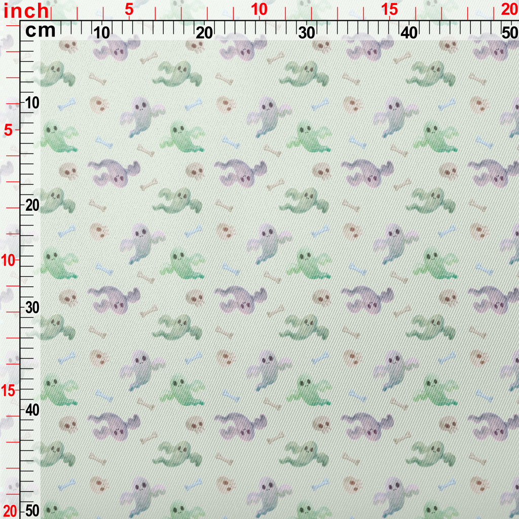 水彩風幽靈和骷髏厚棉布(幅寬150公分)