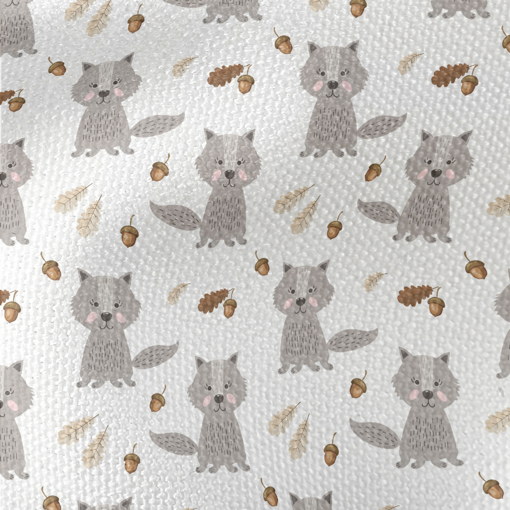 秋天中淘氣的小狼帆布(幅寬150公分)