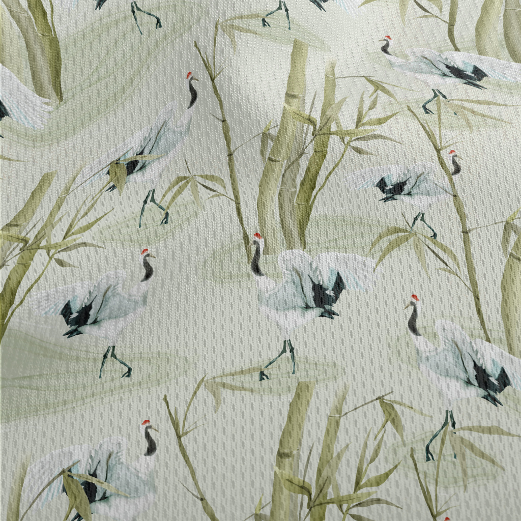 日式丹頂鶴與竹子鳥眼布(幅寬160公分)