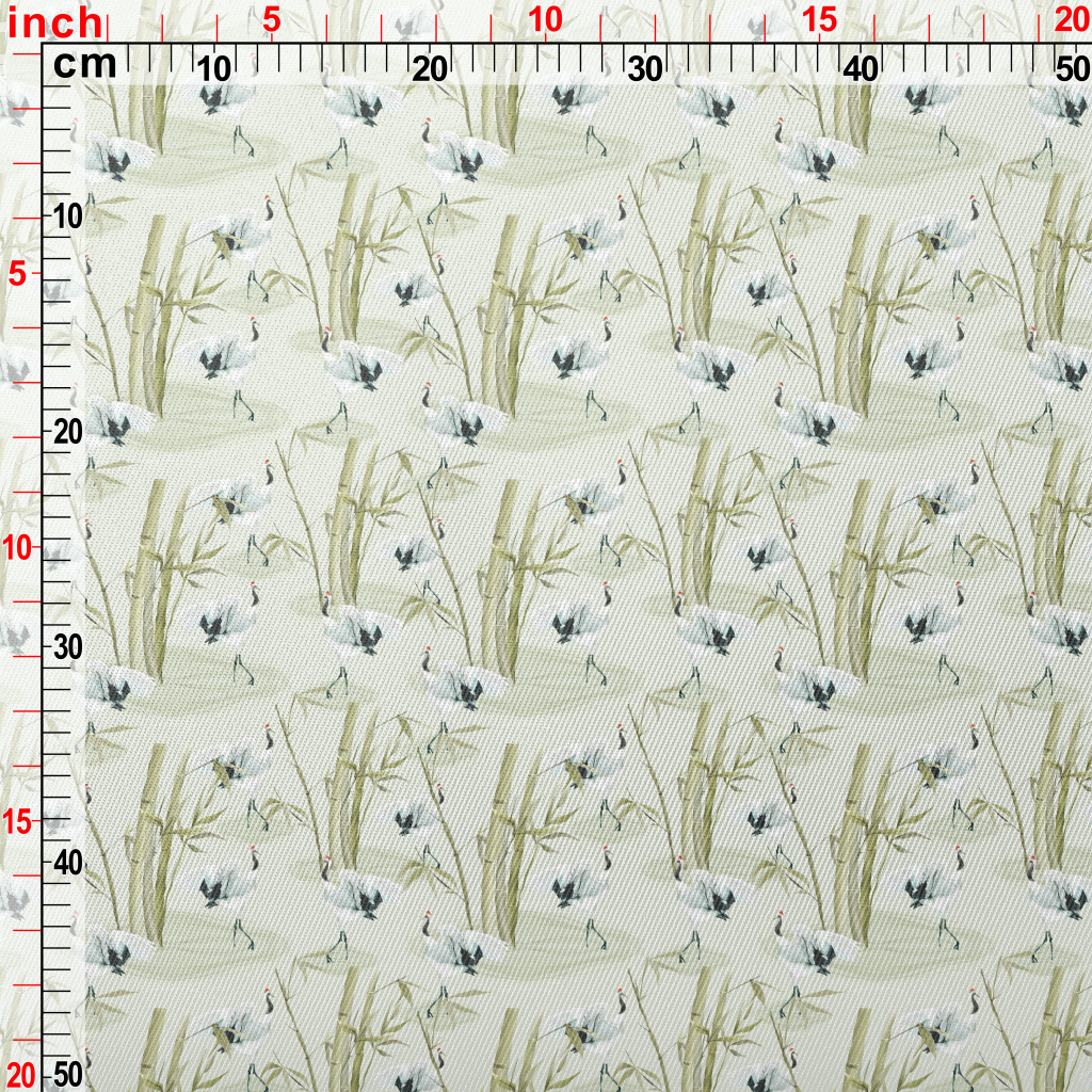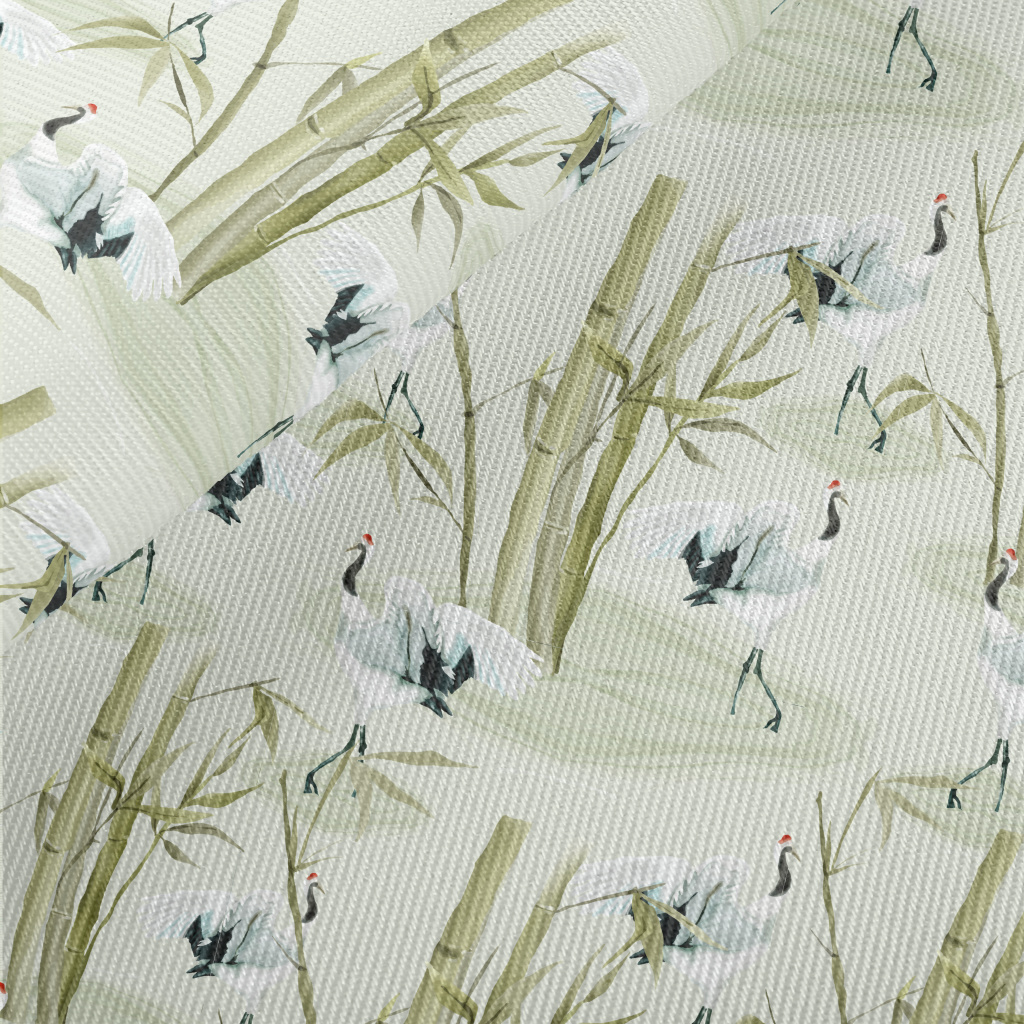 日式丹頂鶴與竹子斜紋布(幅寬150公分)
