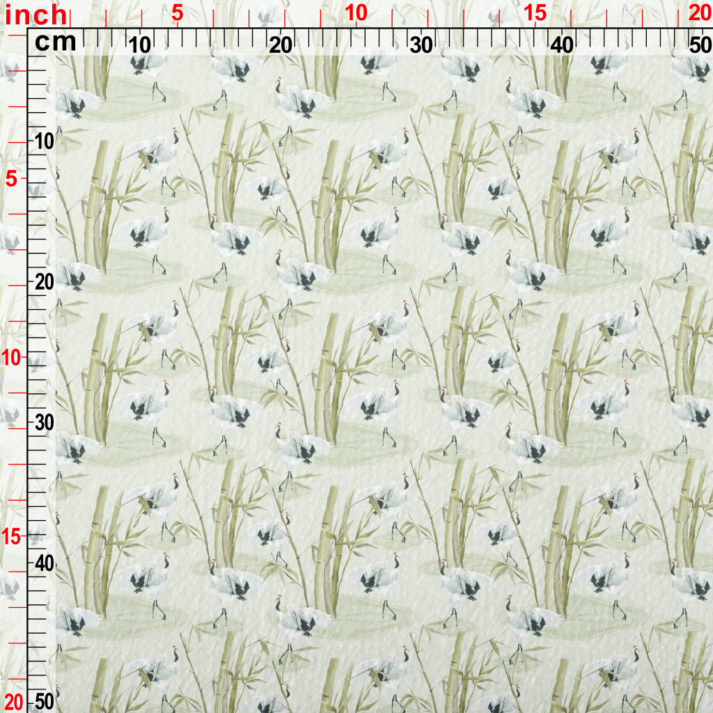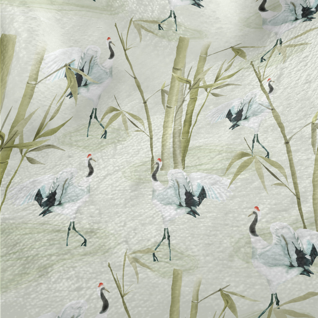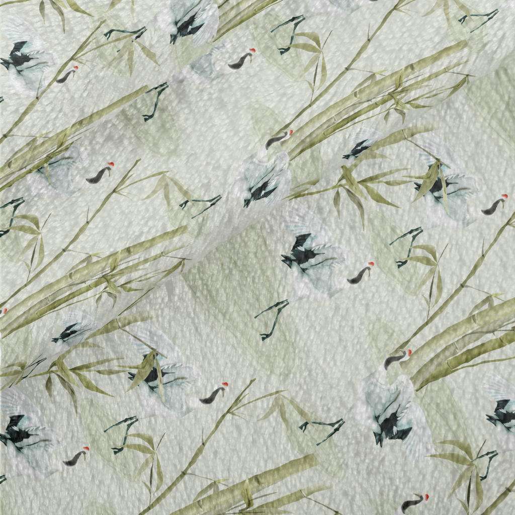 日式丹頂鶴與竹子法蘭絨(幅寬150公分)