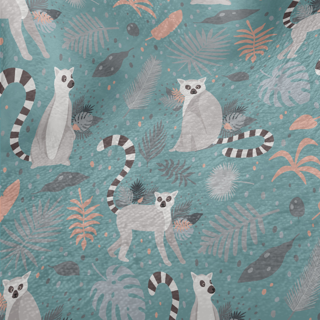 被棕櫚圍繞的狐猴法蘭絨(幅寬150公分)