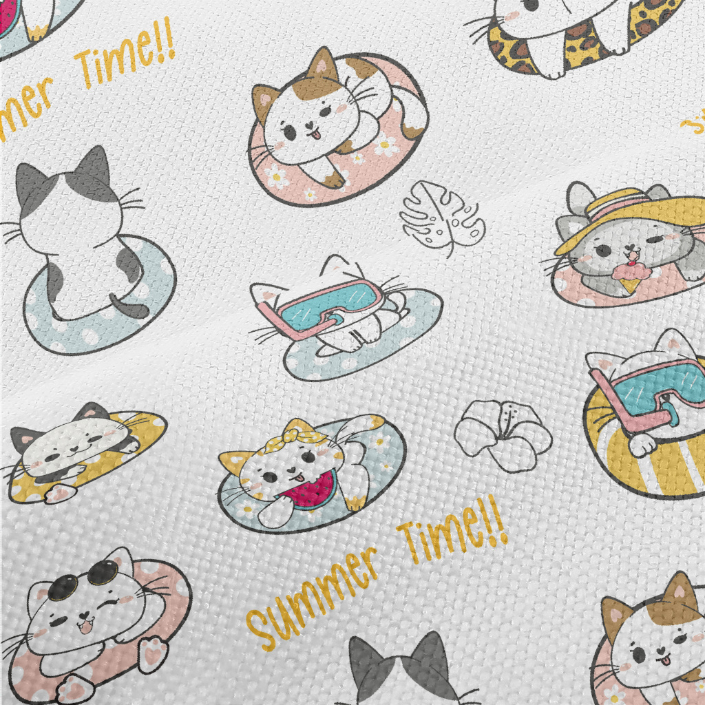 使用游泳圈的貓咪麻布(幅寬150公分)