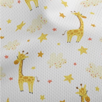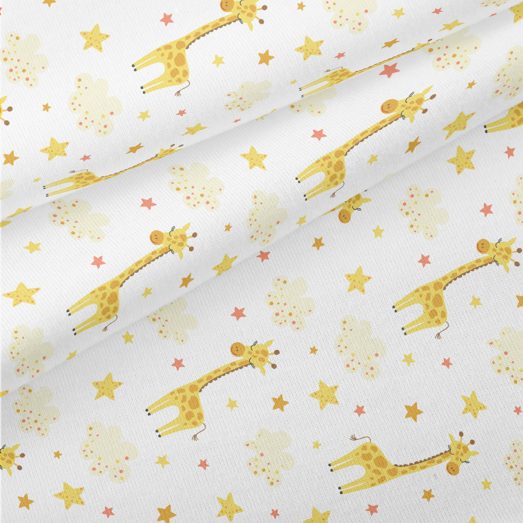 黃色星空的長頸鹿仿棉布(幅寬150公分)