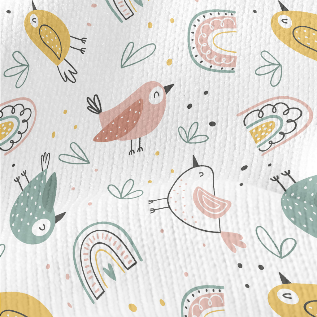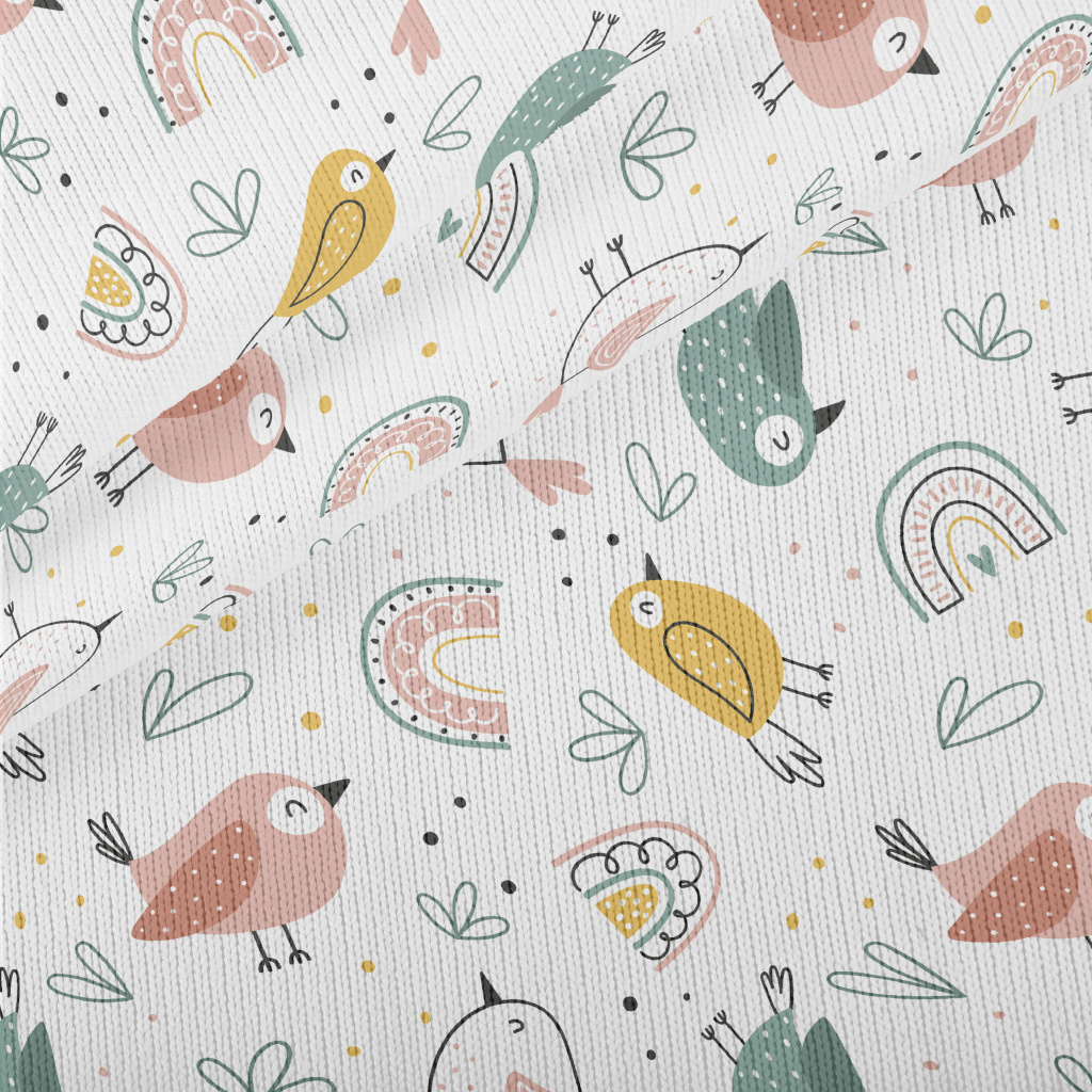 彩虹與彩色鳥兒仿毛衣布(幅寬150公分)