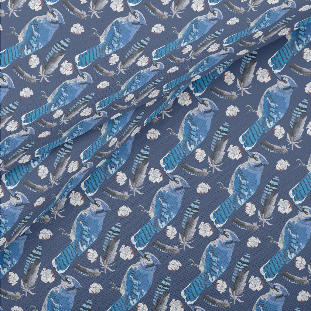 有美麗羽毛的冠藍鴉薄棉布(幅寬150公分)
