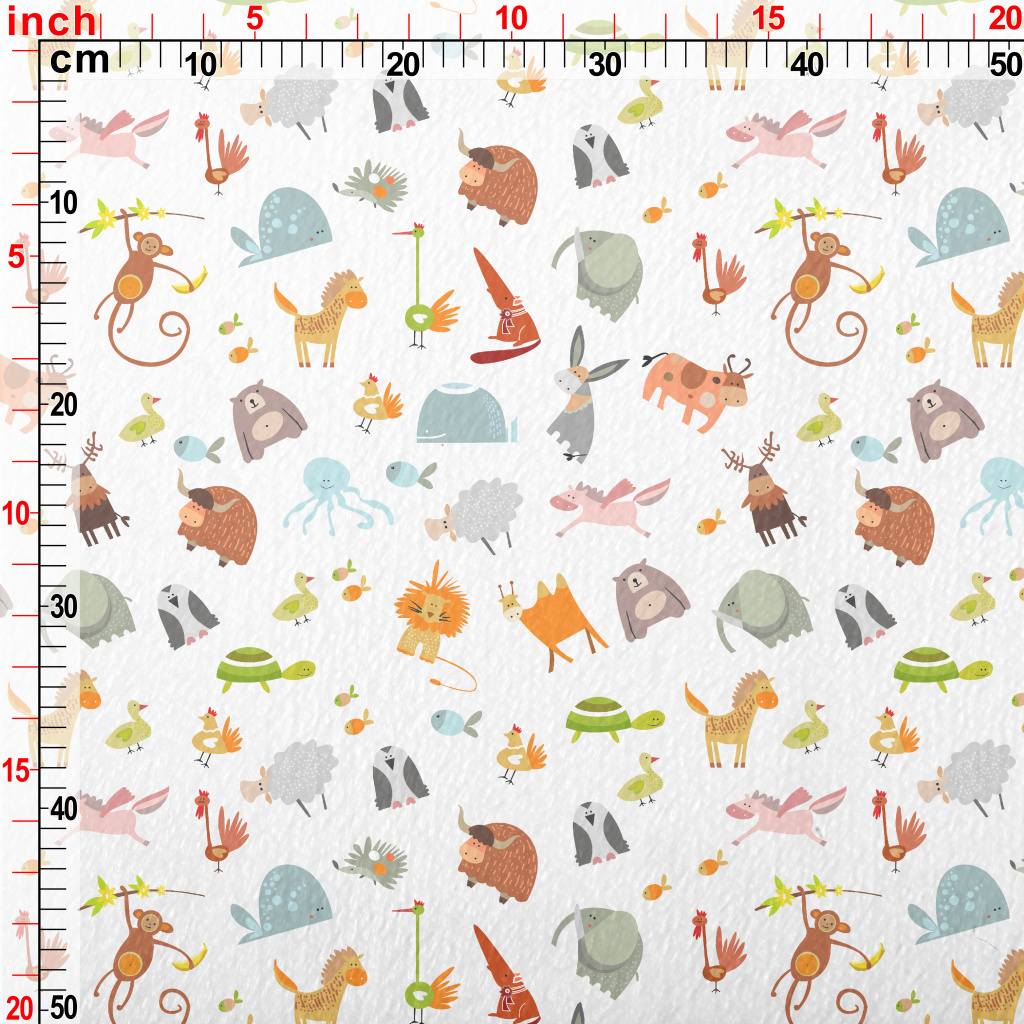 陸地海洋動物大集合法蘭絨(幅寬150公分)