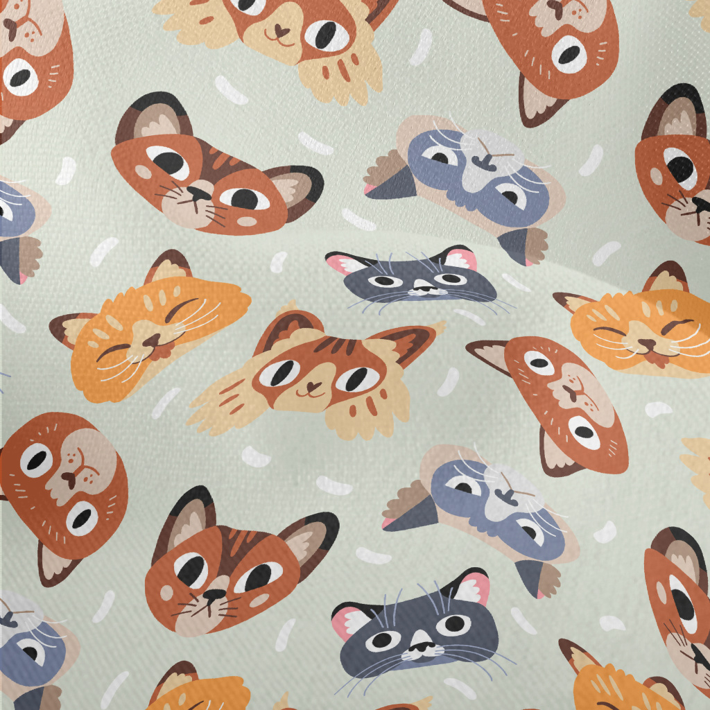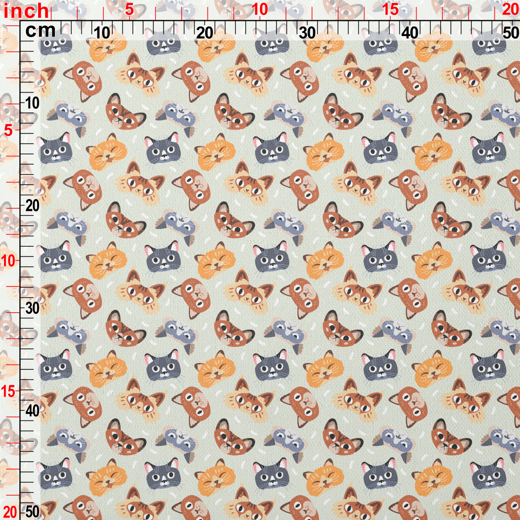 表情豐富的調皮貓咪竹節麻(幅寬150公分)