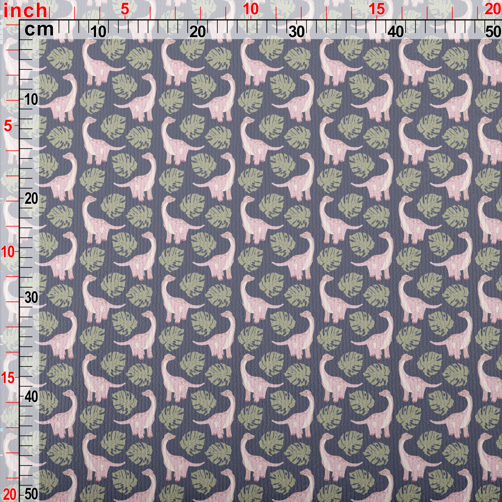 粉色恐龍與龜背芋毛巾布(幅寬160公分)