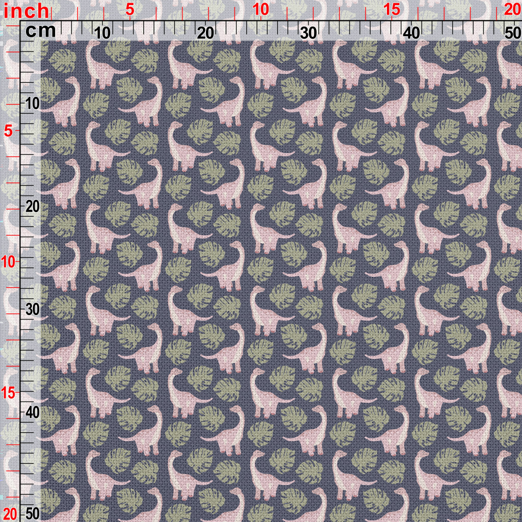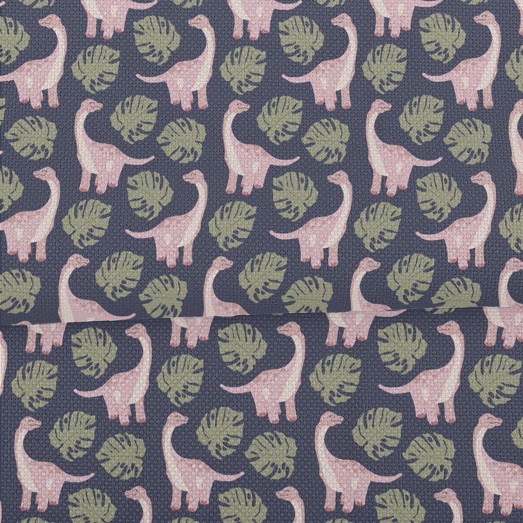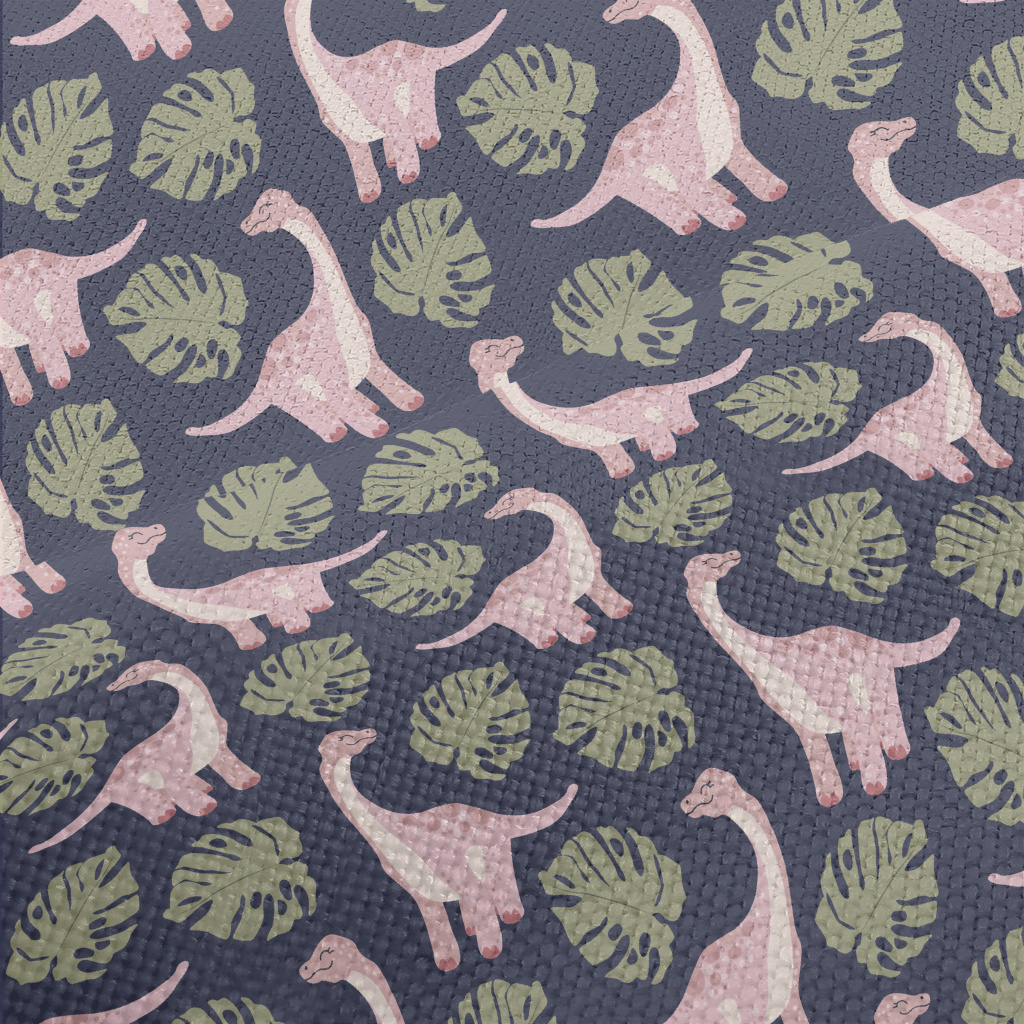 粉色恐龍與龜背芋麻布(幅寬150公分)