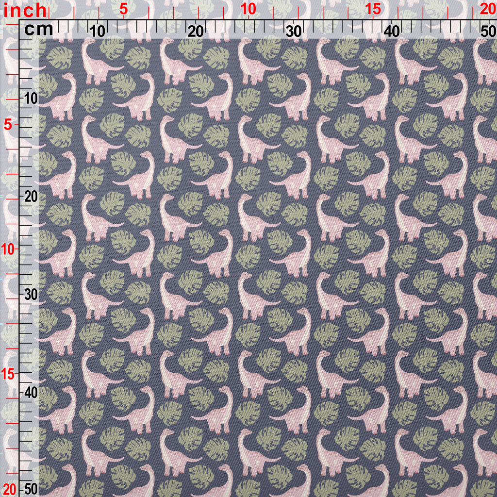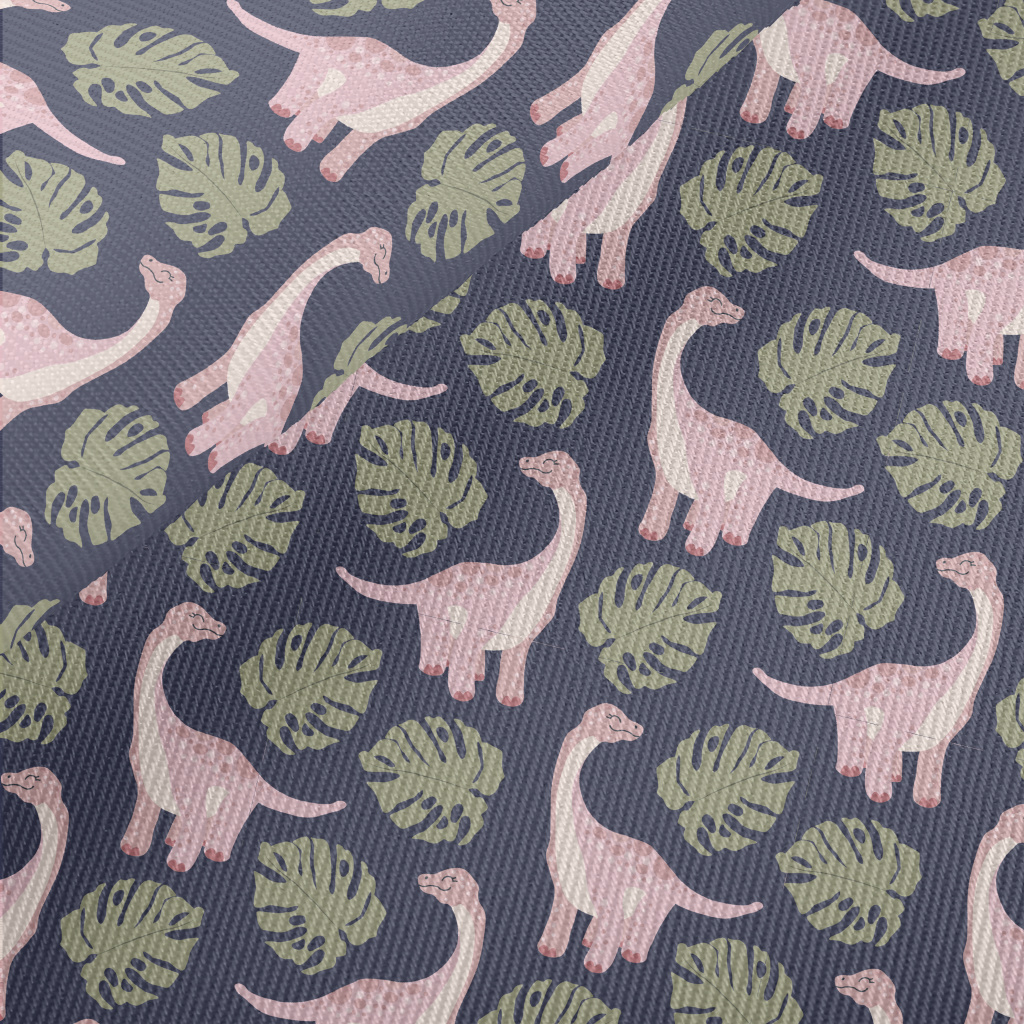 粉色恐龍與龜背芋斜紋布(幅寬150公分)