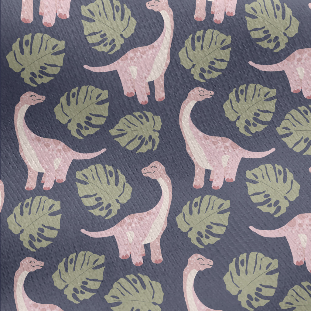 粉色恐龍與龜背芋刷毛布(幅寬150公分)