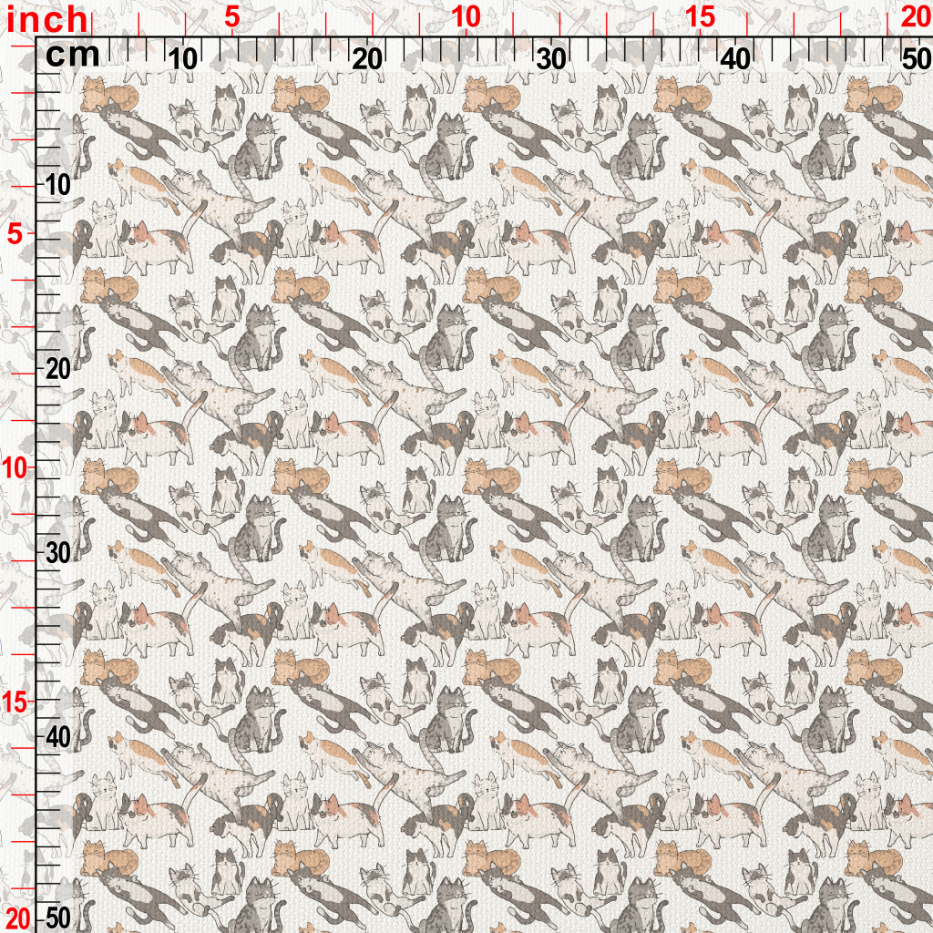 貓生活的手繪塗鴉帆布(幅寬150公分)