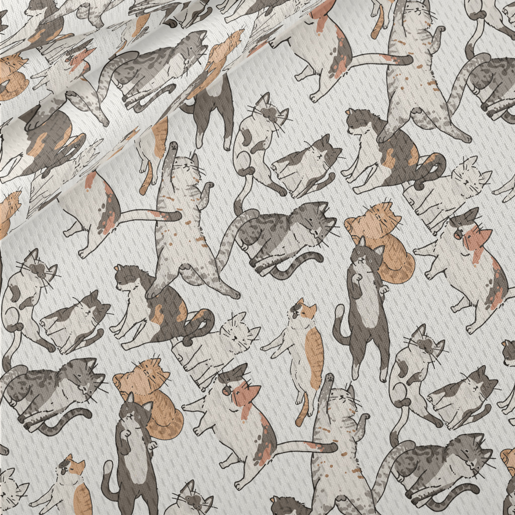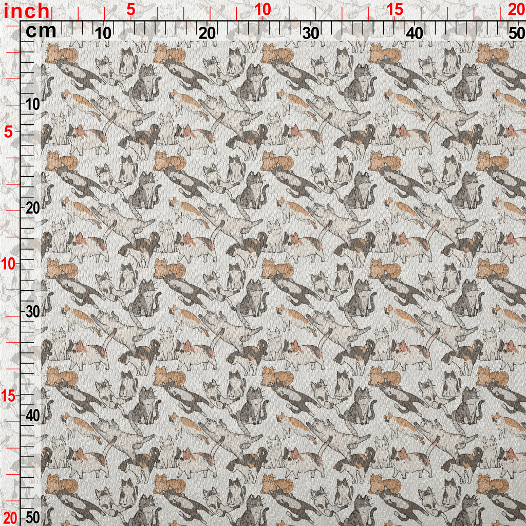 貓生活的手繪塗鴉鳥眼布(幅寬160公分)