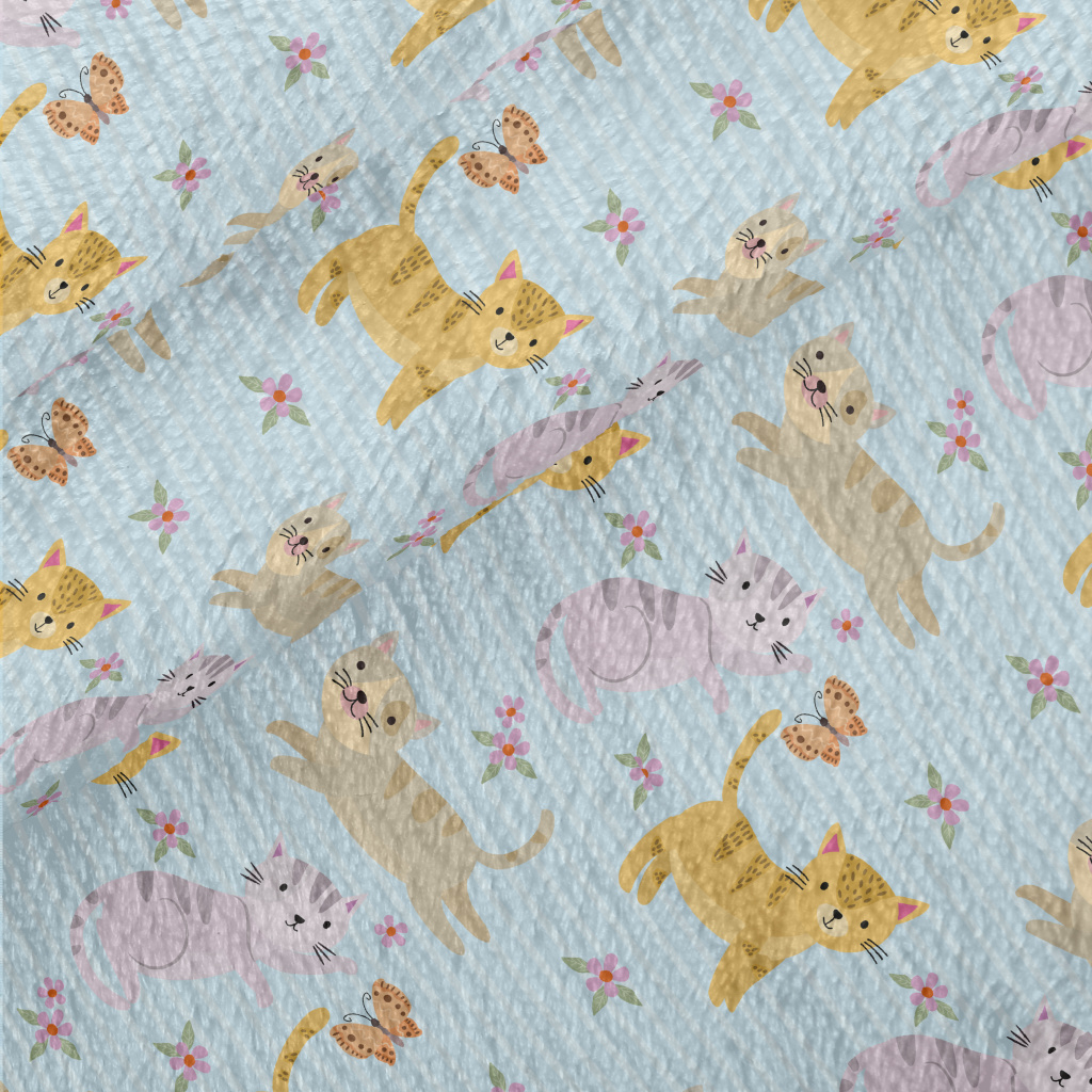 小貓們追逐著蝴蝶法蘭絨(幅寬150公分)