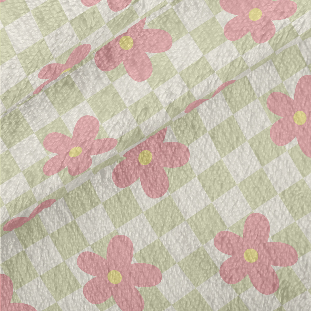 雙色格紋上的小花法蘭絨(幅寬150公分)